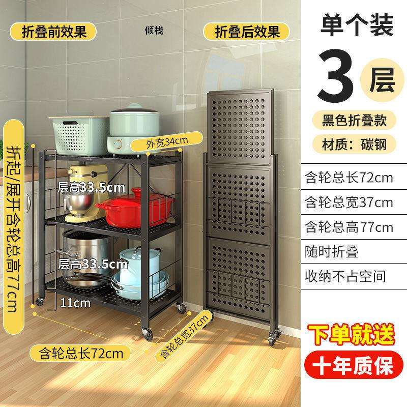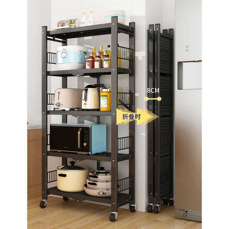 厨房折叠置物架落地多层微波炉烤箱收纳架免安装货架锅具锅架
