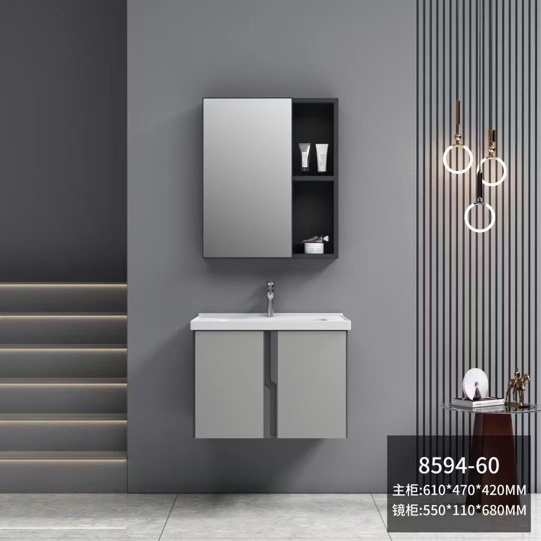 卫生间浴室柜潮州铝柜不绣钢门板珠光灰色吊柜挂墙式柜8594