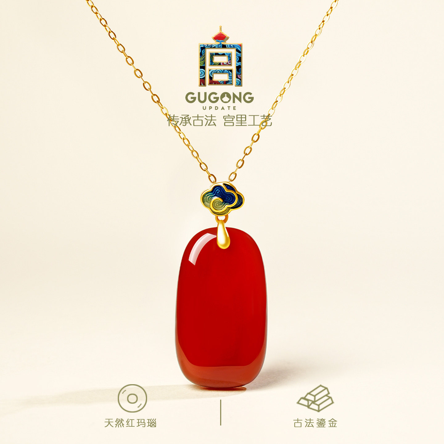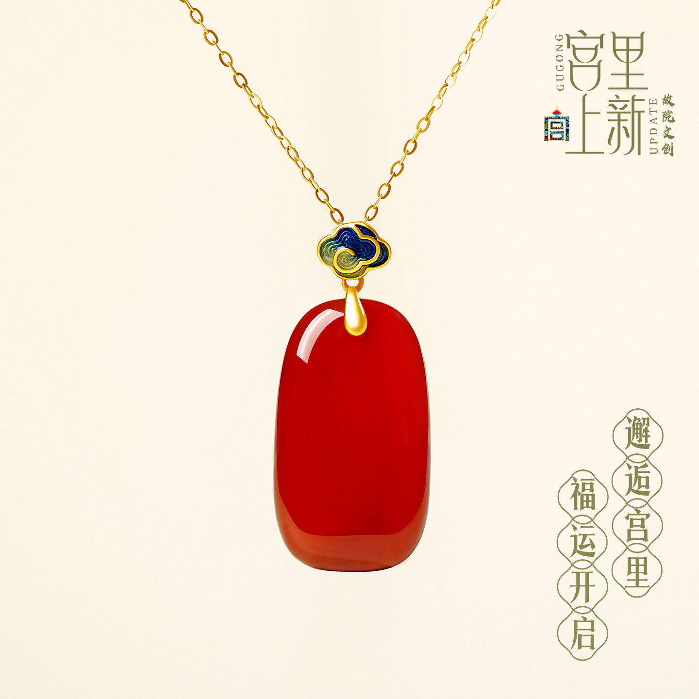 宫里上新红玛瑙吊坠女款纯银无事牌项链红宝石玉坠生日母亲节礼物
