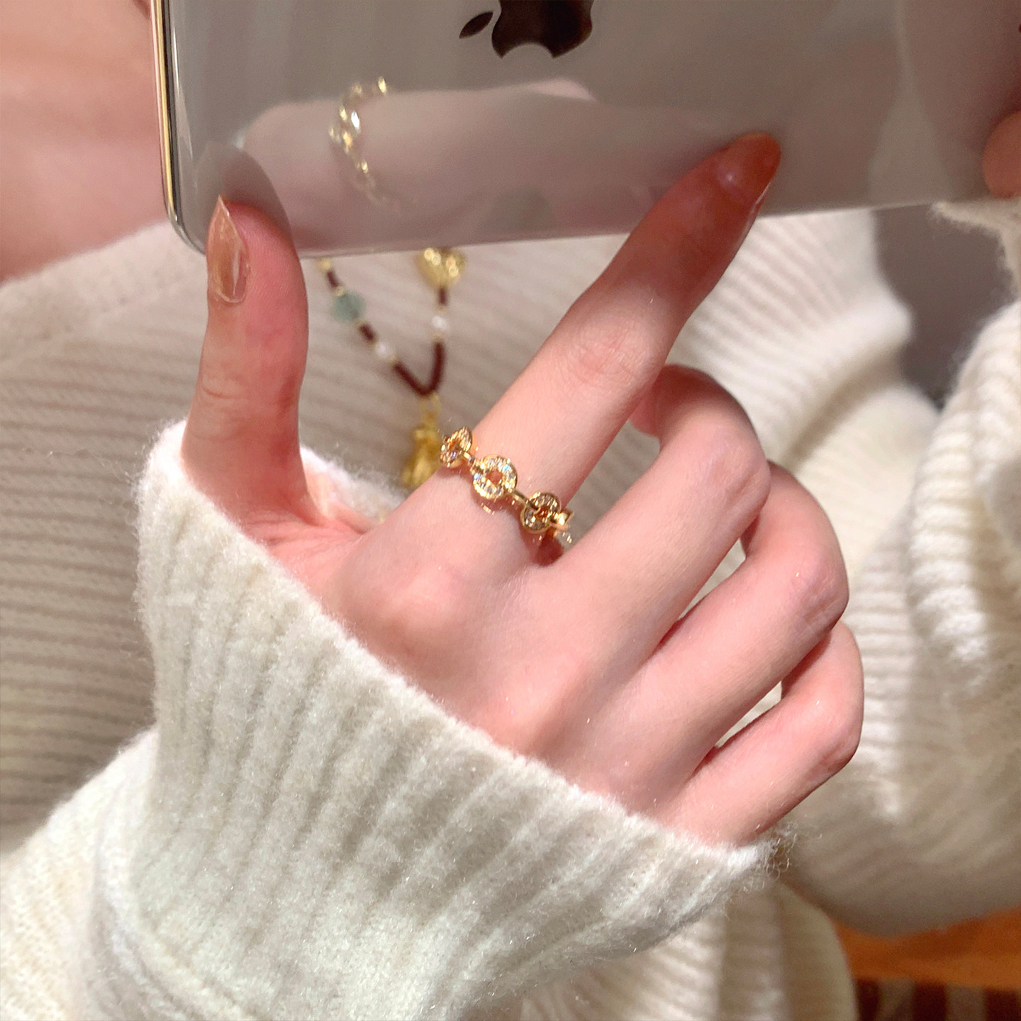中古金色满钻五帝钱戒指2025年新款复古精致小众高级感钱多多指环