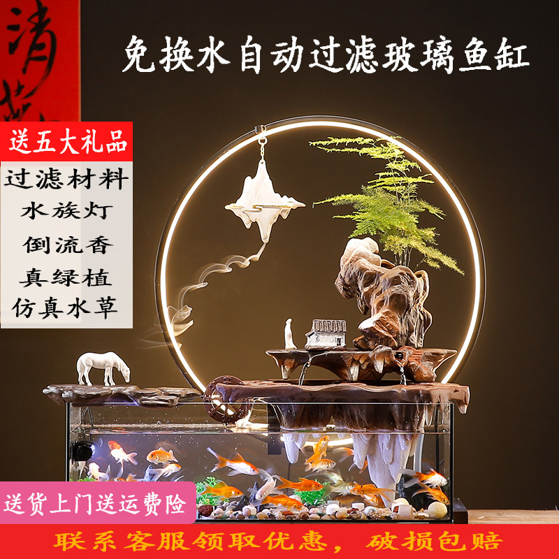 创意免换水生态玻璃鱼缸造景假山流水摆件循环水客厅办公室装饰品