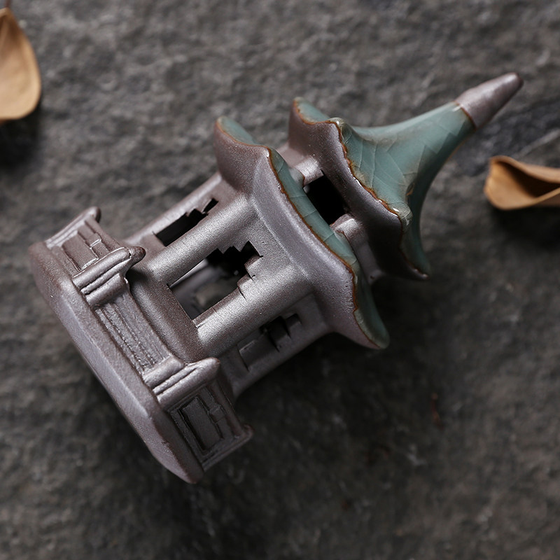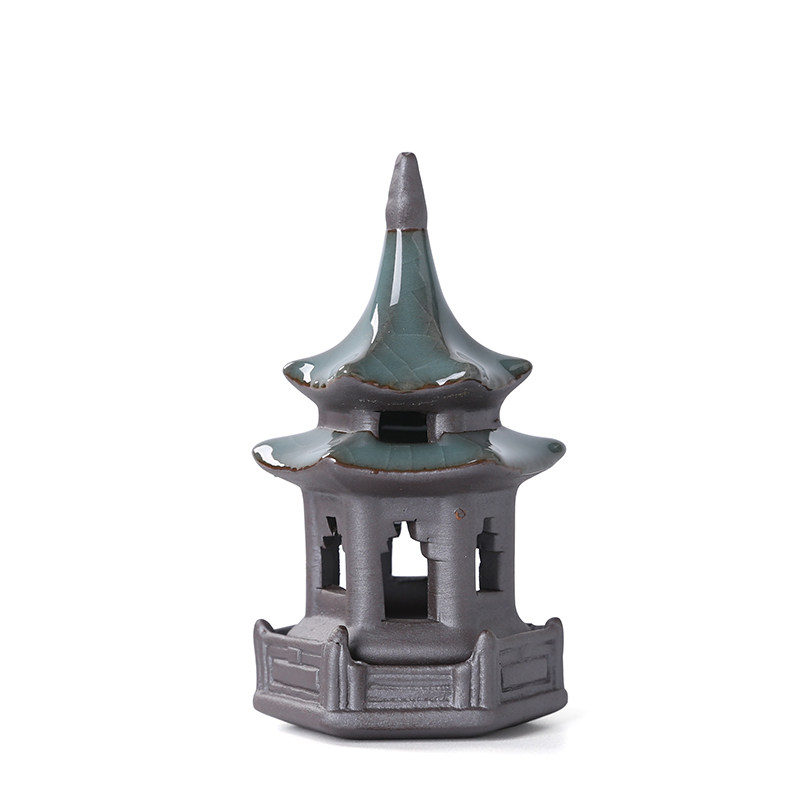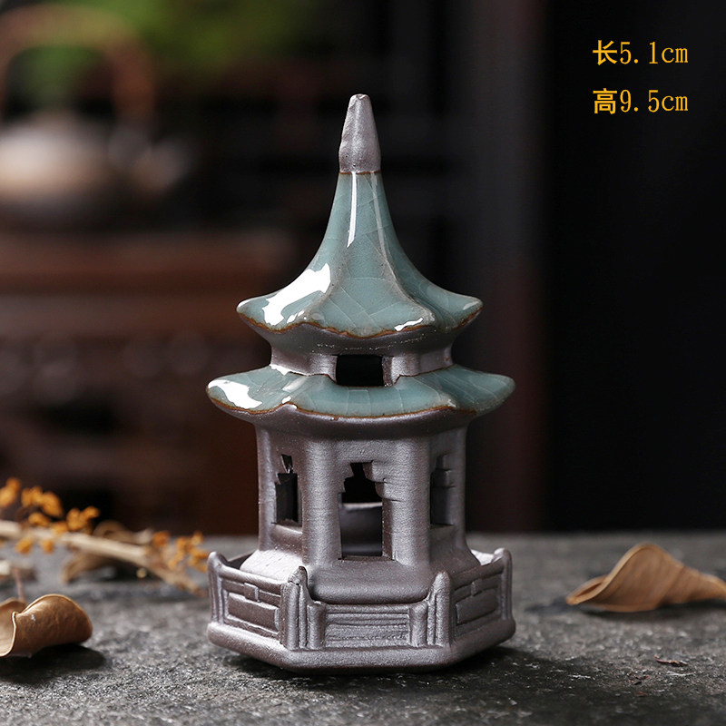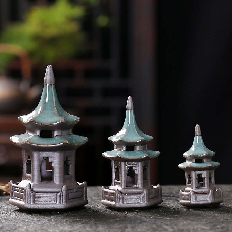 陶瓷六角亭凉亭微景观小宝塔摆件造景园艺盆景鱼缸假山流水器配件