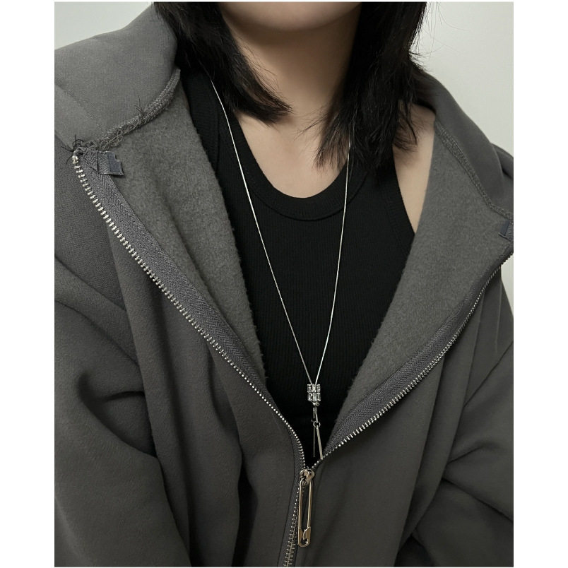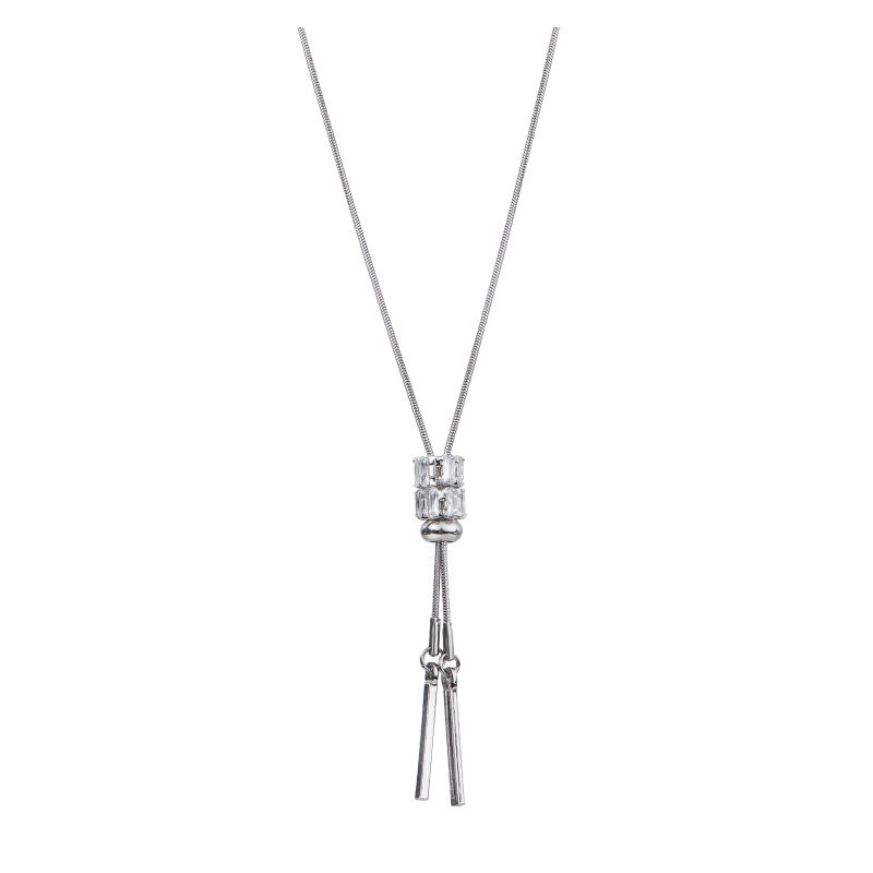 新款 钛钢圆筒锆石方条项链女小众设计感毛衣链个性感潮饰品蛇骨
