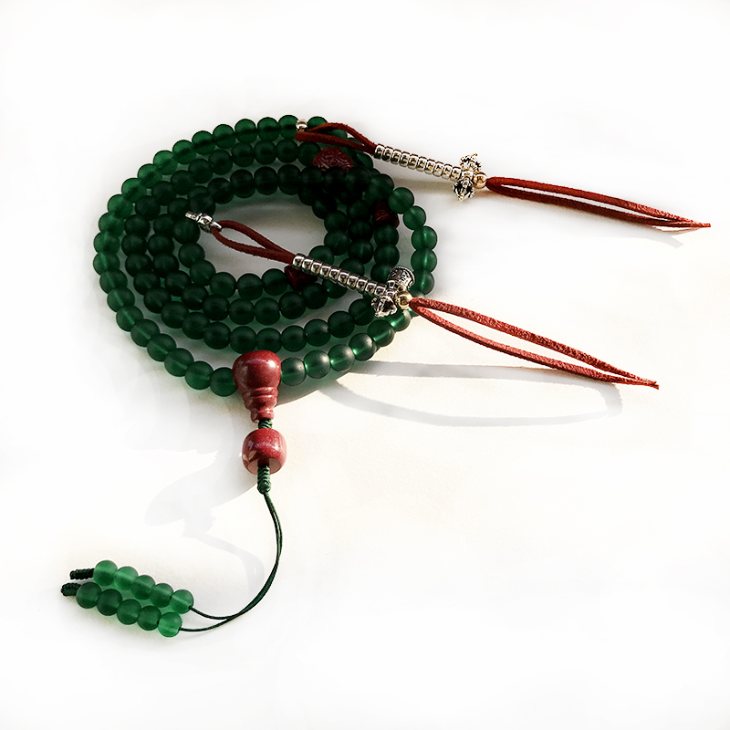 清凉海尼泊尔手工老琉璃108颗绿度母佛珠高含量朱砂念珠手链手串