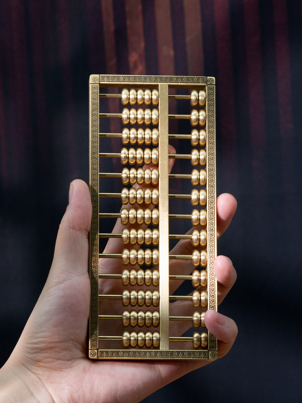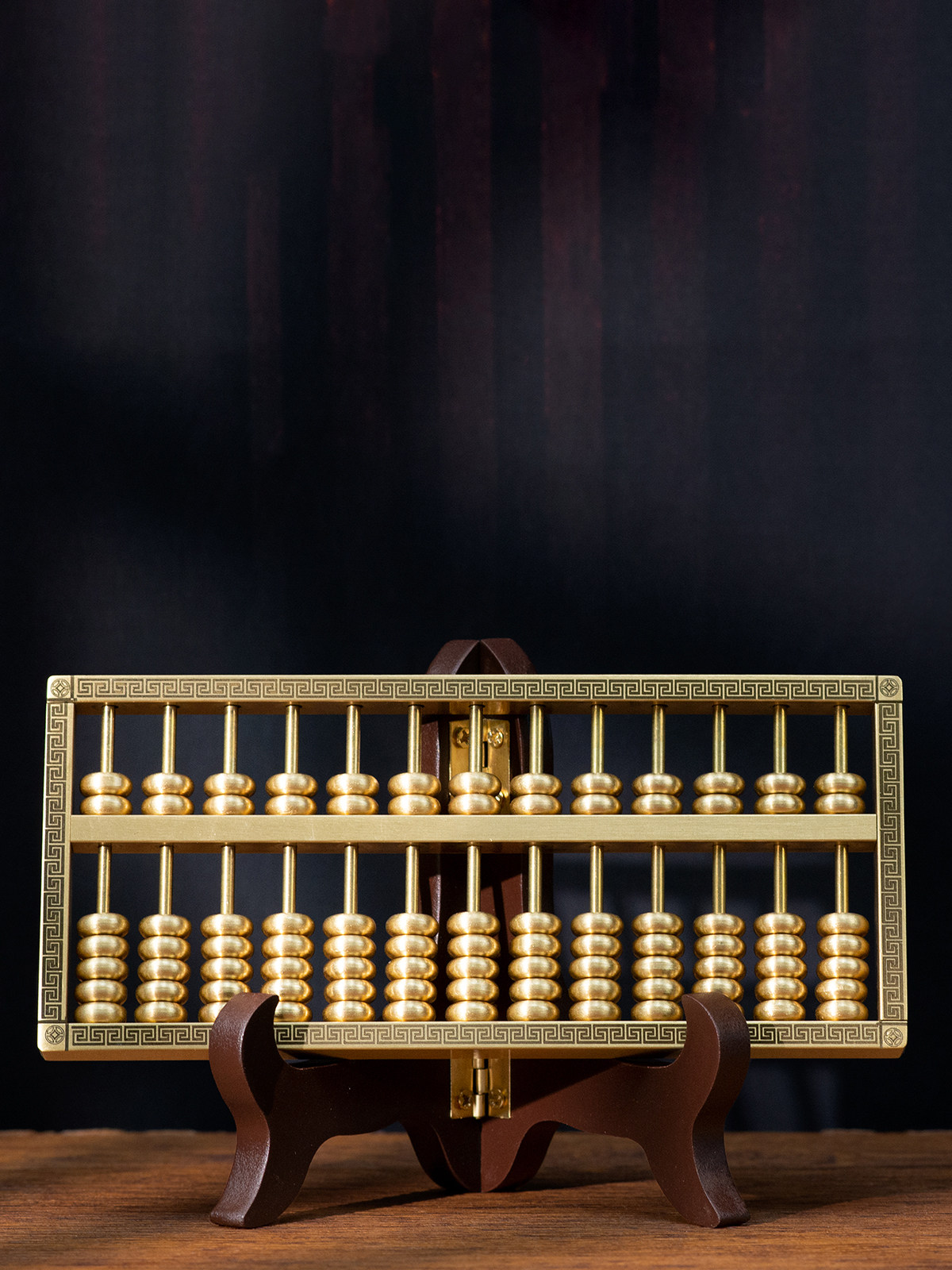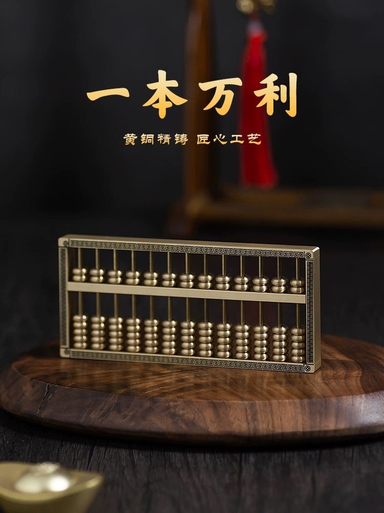 纯黄铜算盘实心如意算盘一本万利花纹家居装饰办公室招财礼物摆件