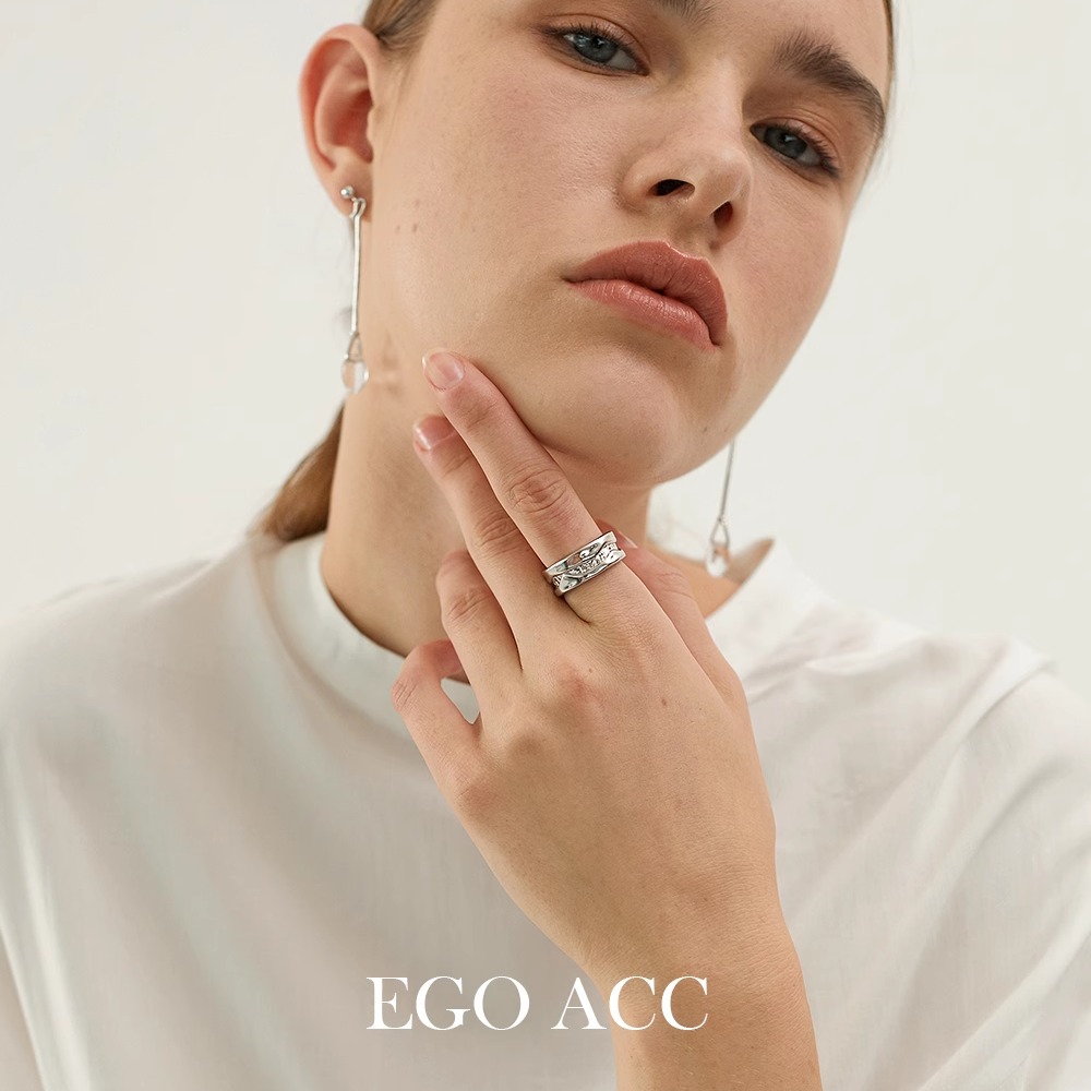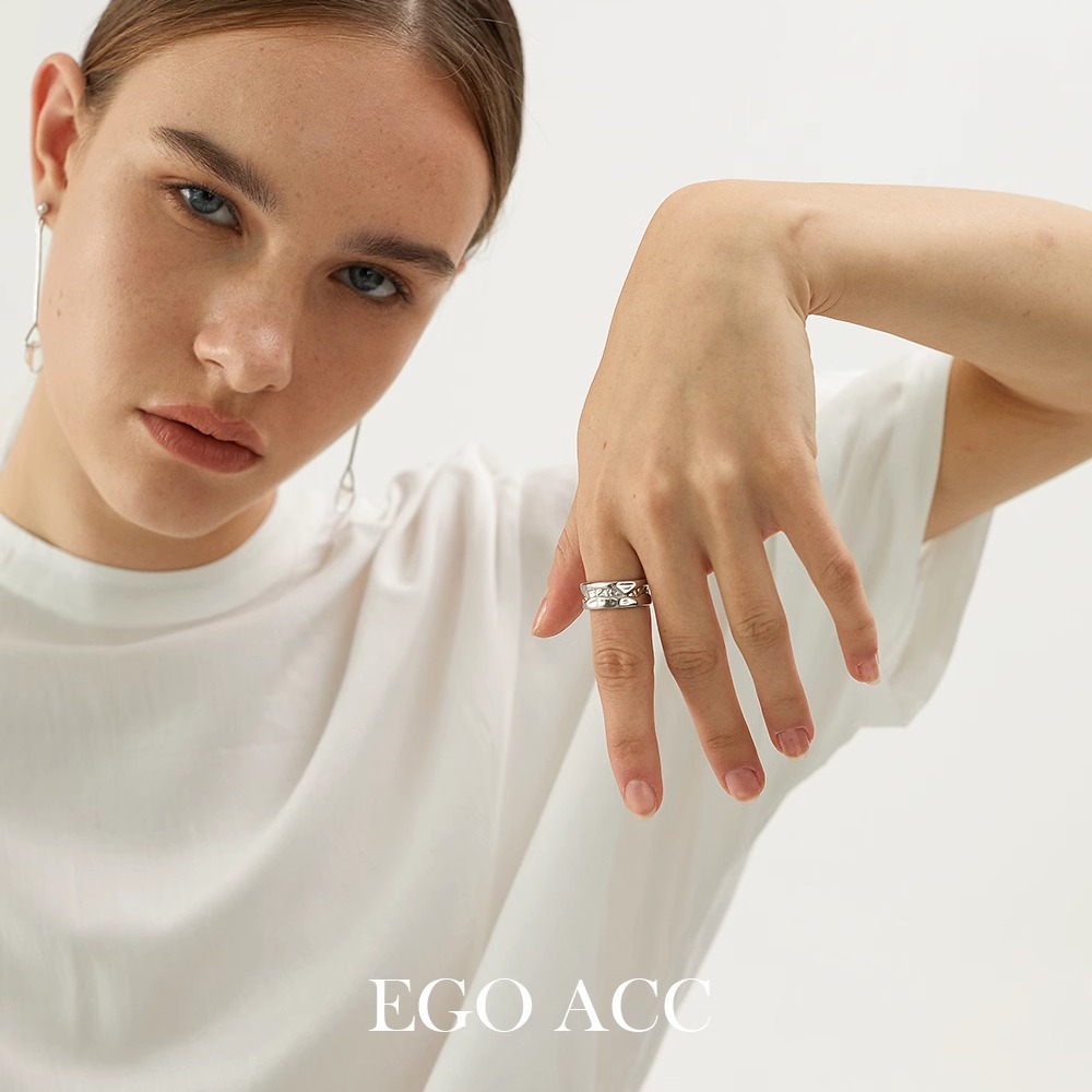 EGO ACC破碎银河 冷淡朋克风凹凸设计925银戒指设计师宽面开口戒