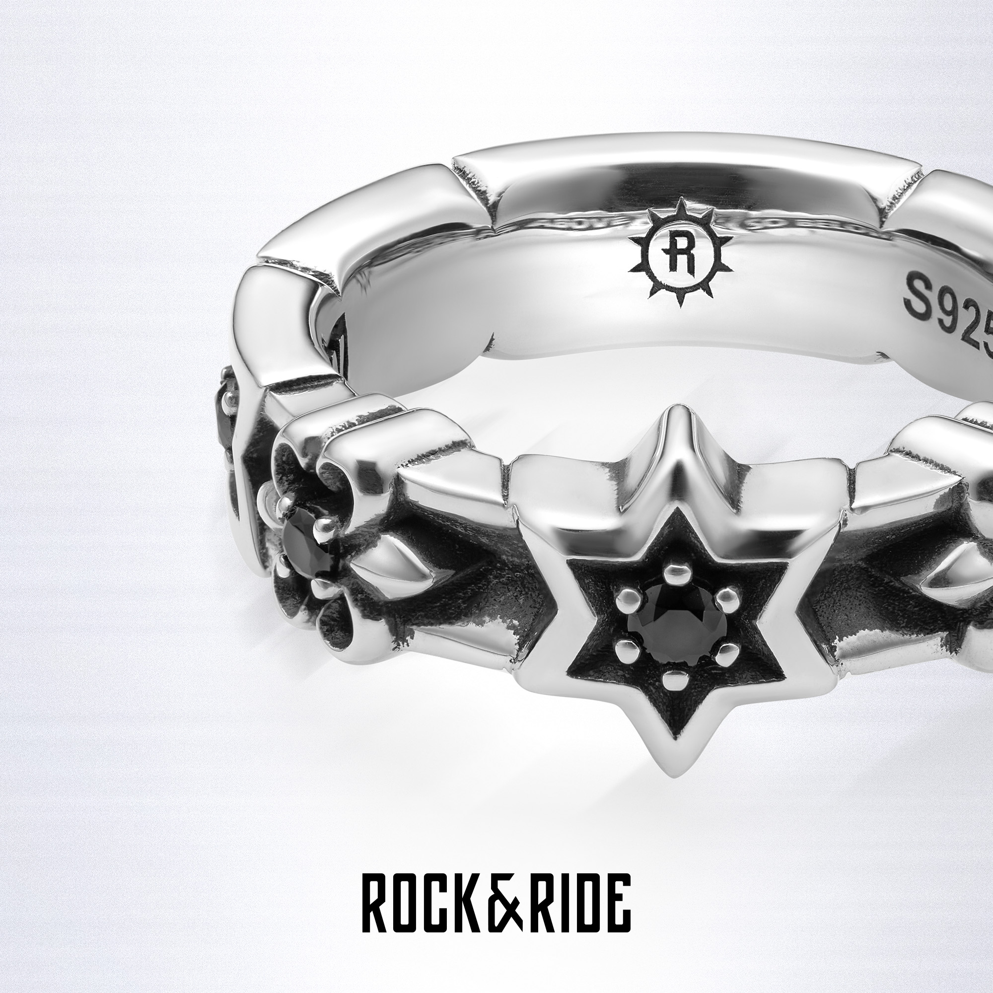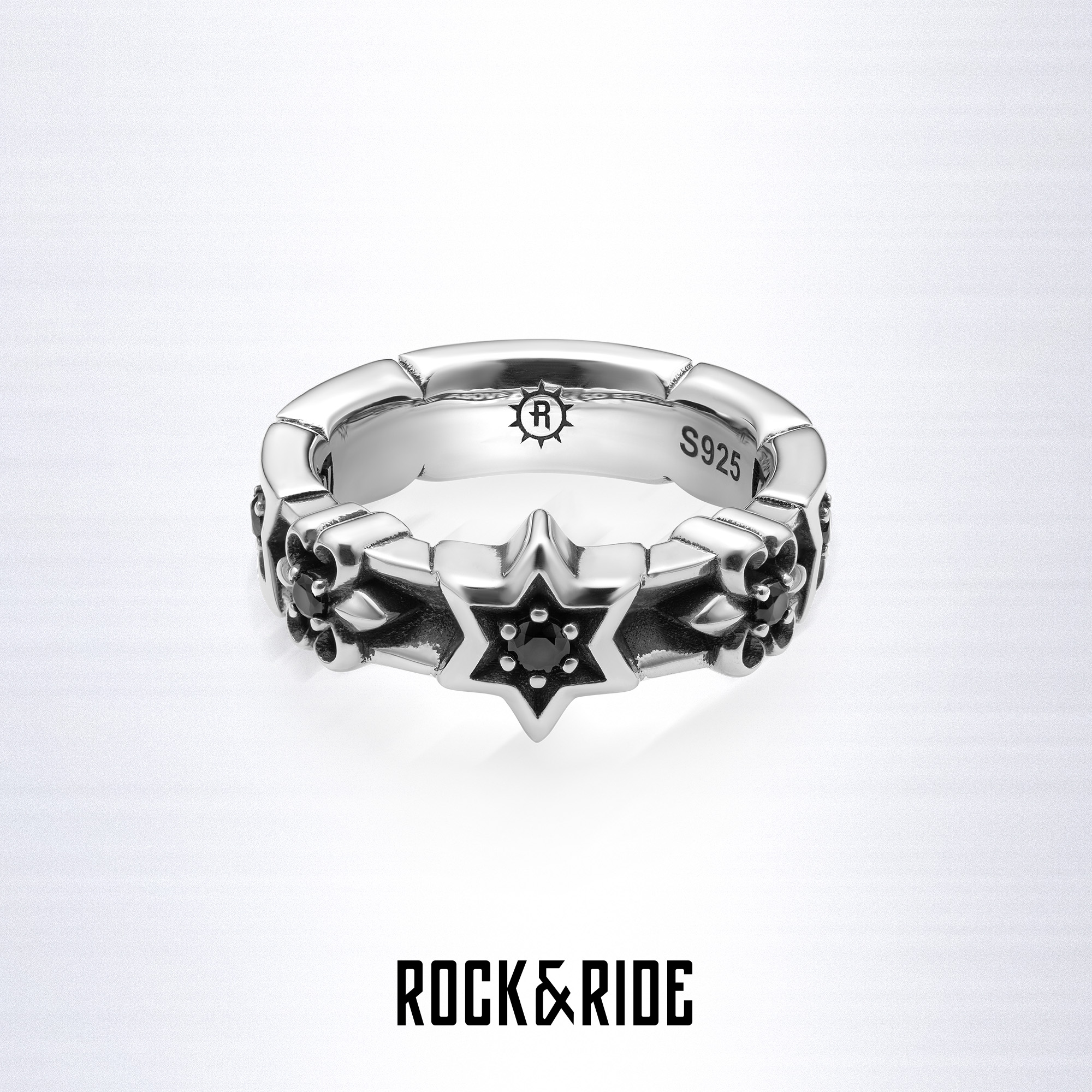 ROCKRIDE 荣耀六芒星戒指 纯银女情侣男个性欧美对戒