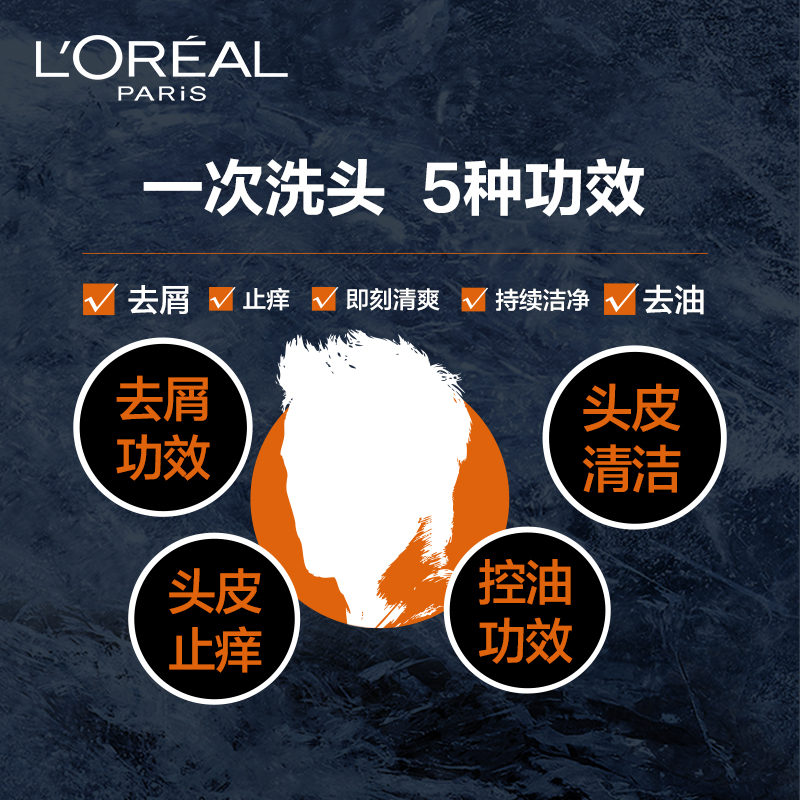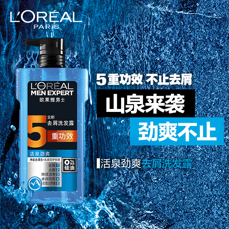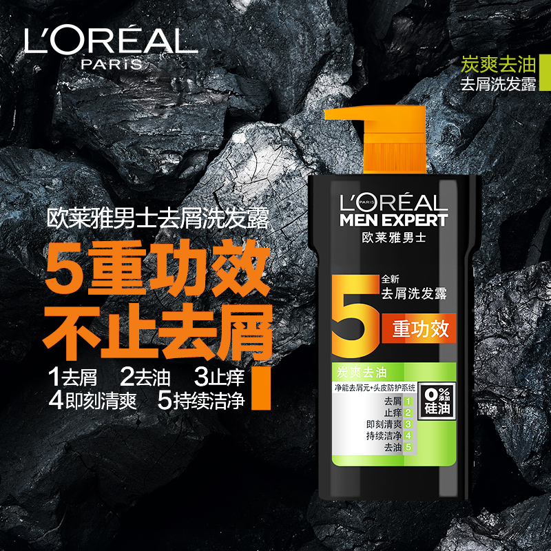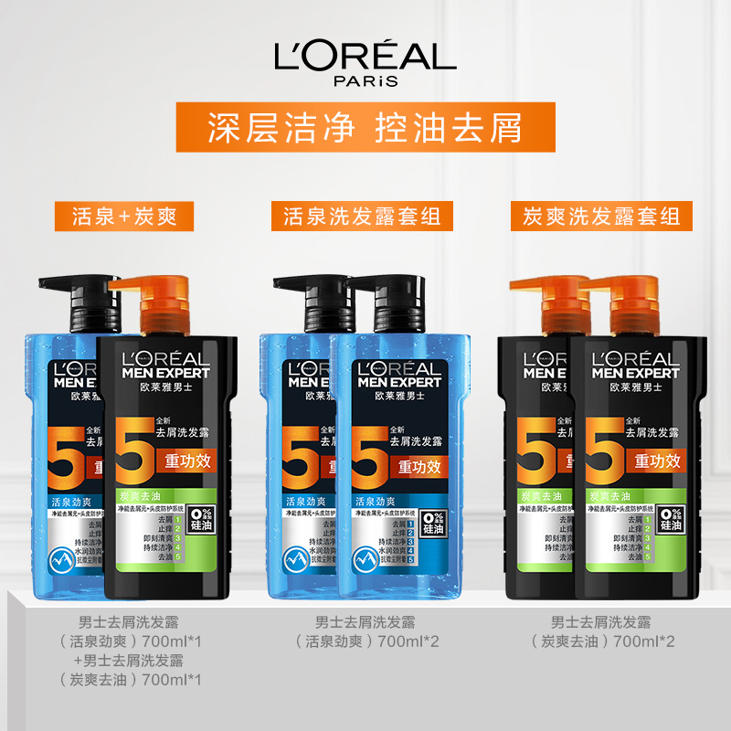 欧莱雅男士炭爽水润劲爽去油活泉洗发水套装 去头屑控油 清爽洁净
