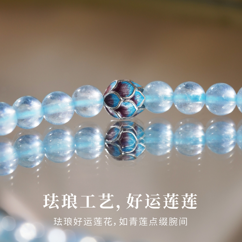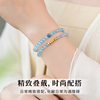 海蓝宝手串双圈4mm小米珠天然水晶手链叠戴女蓝色玉石极细手绳