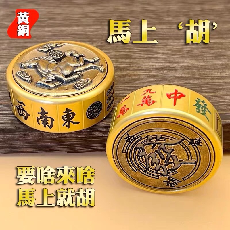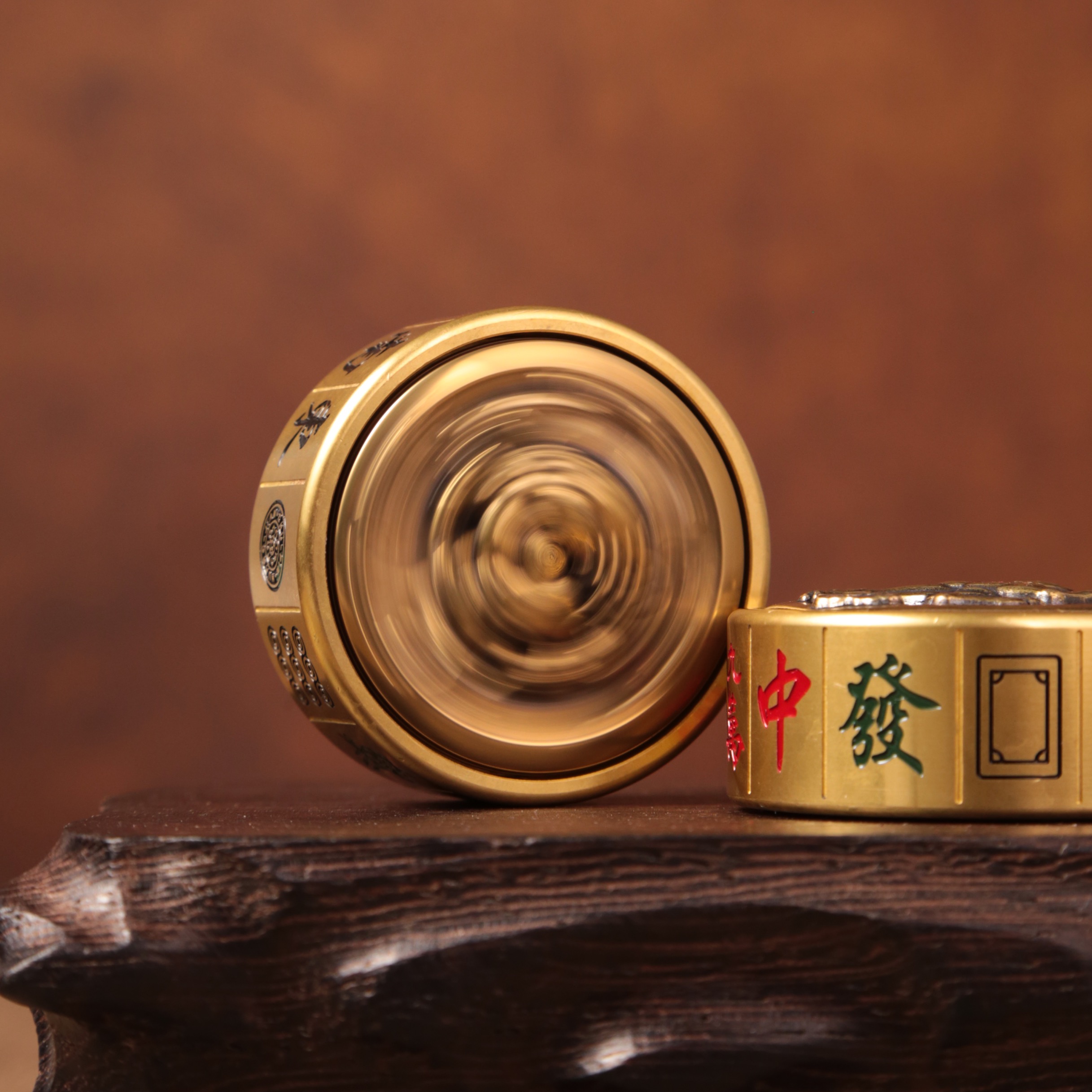 纯黄铜马上胡手把件中发白旋转麻将指尖陀螺趣味减压神器送礼佳品