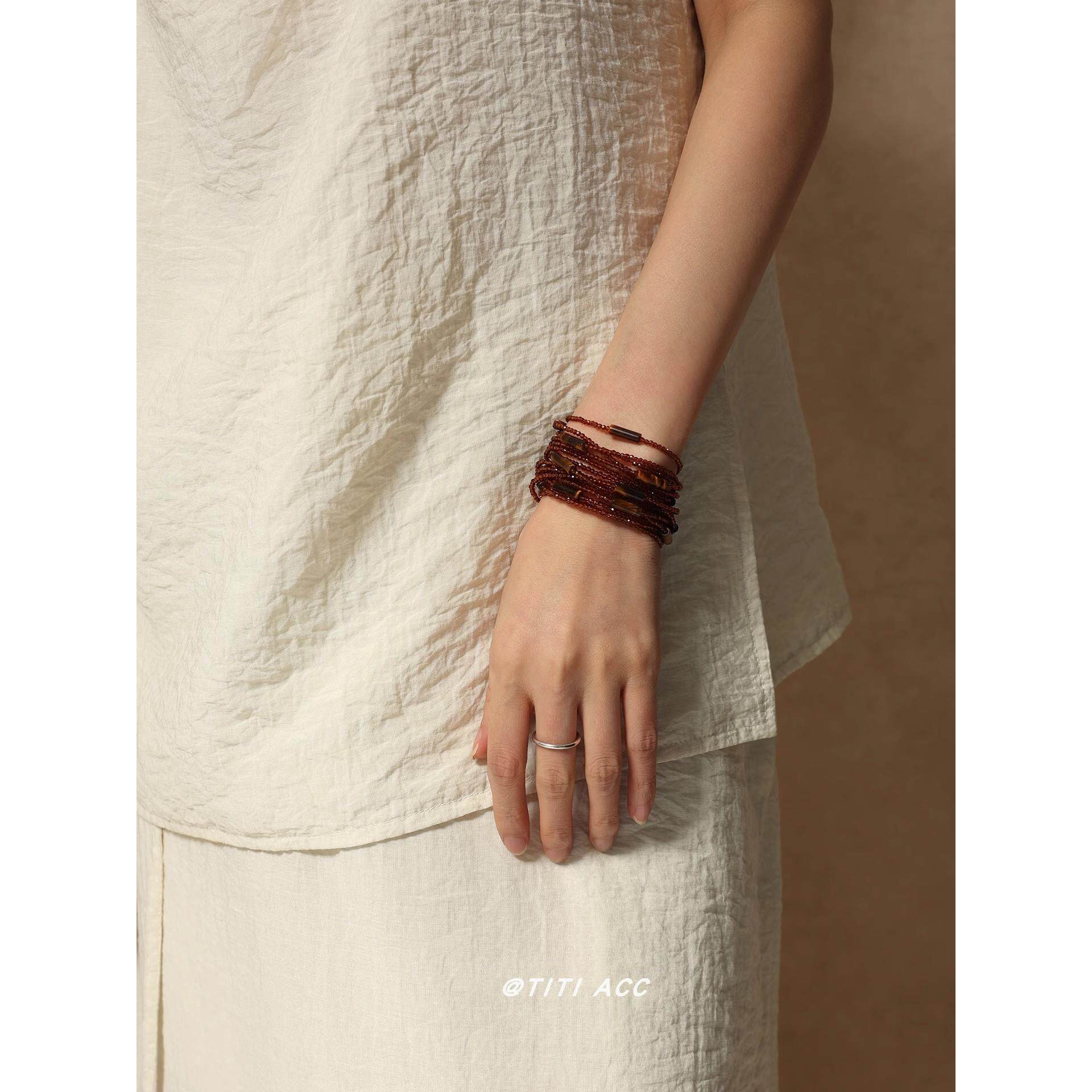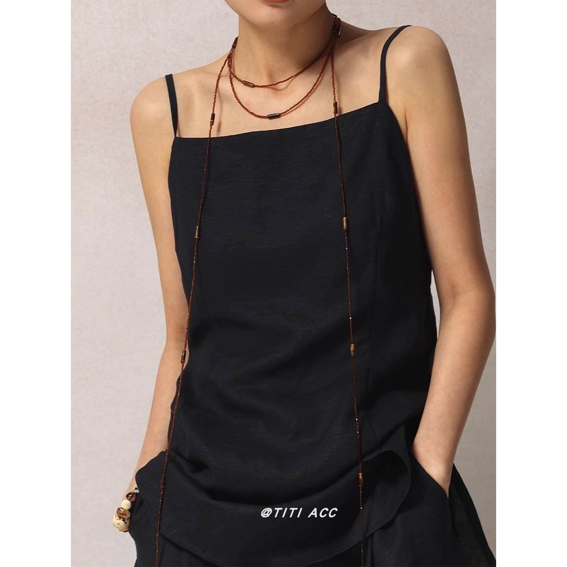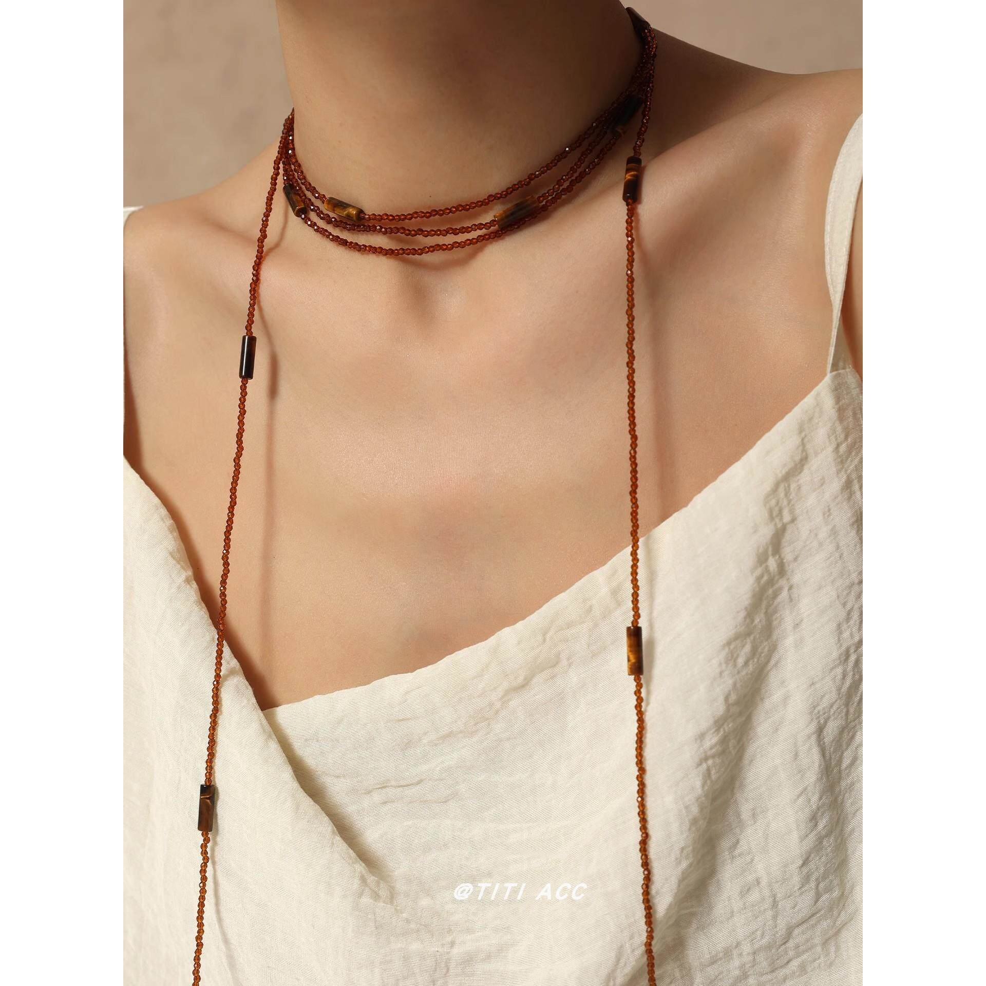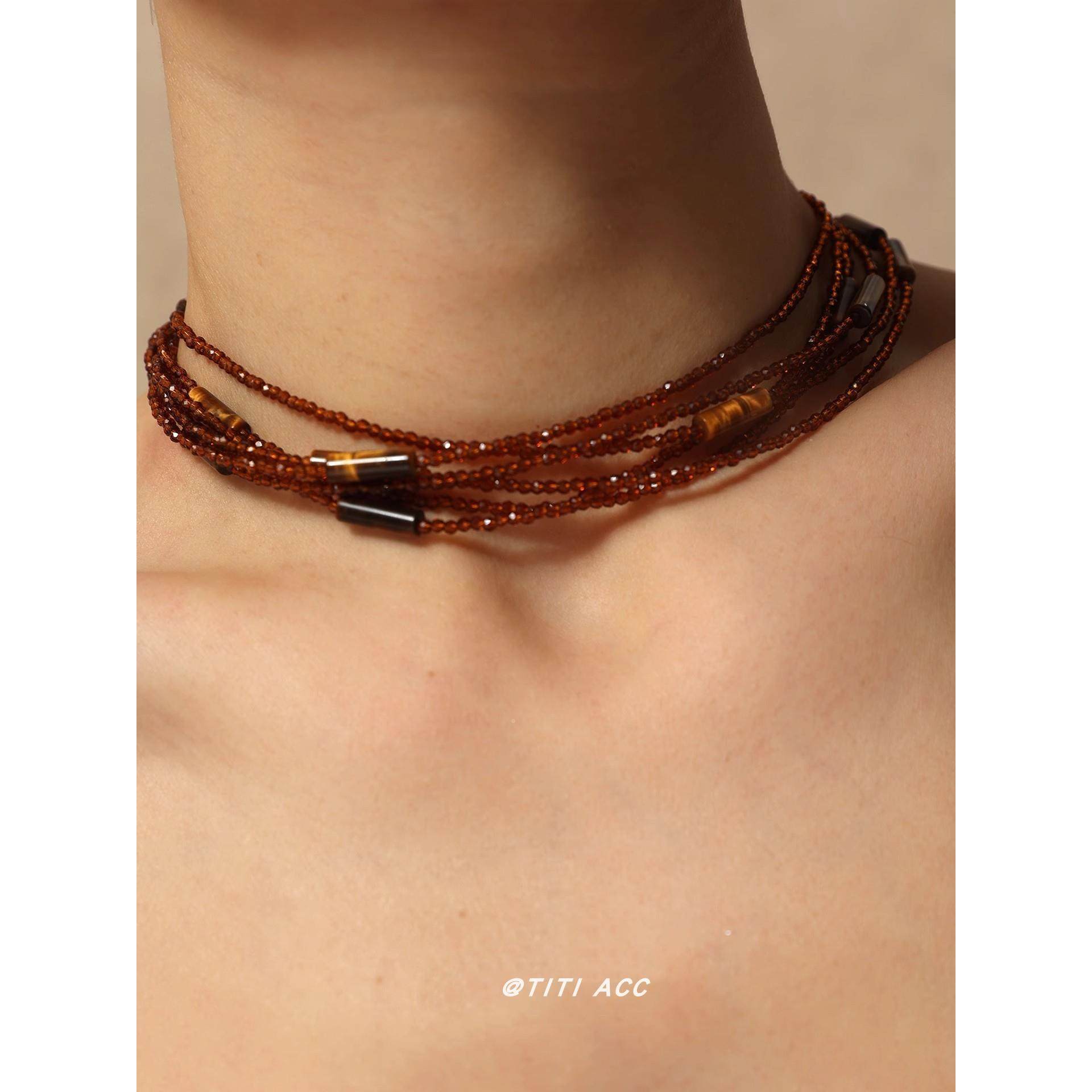 复古棕色多层串珠项链衣服配饰精致颈链轻奢高级感气质大气锁骨链
