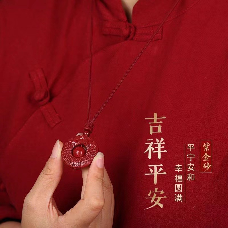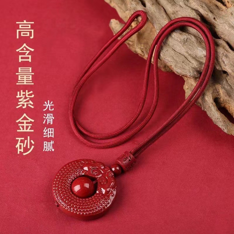 精美好看朱砂天然紫金砂龙凤男女吊坠本命年貔貅平安扣挂件项链礼