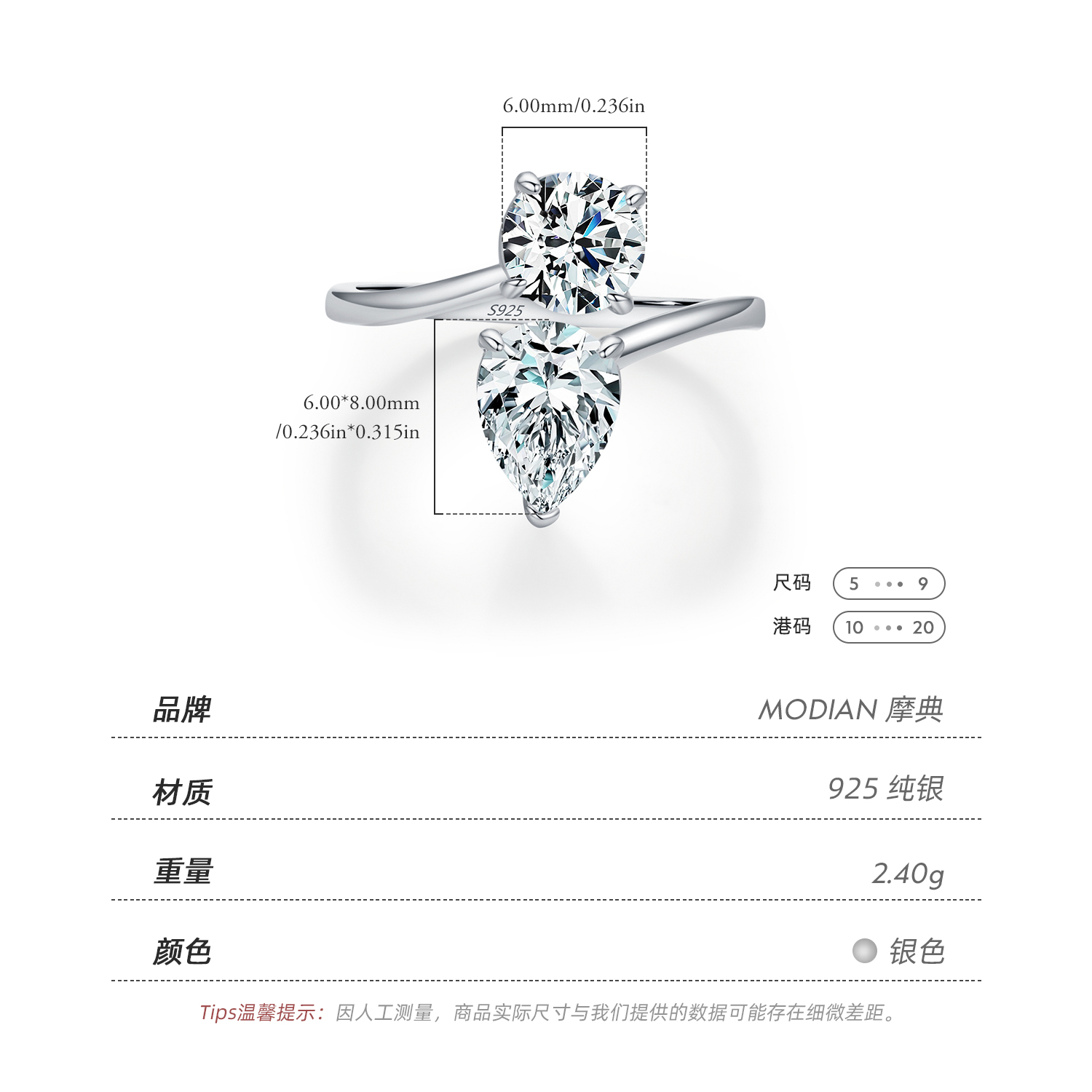 MODIAN摩典S925纯银轻奢闪耀双主石戒指女高级设计感交织食指戒