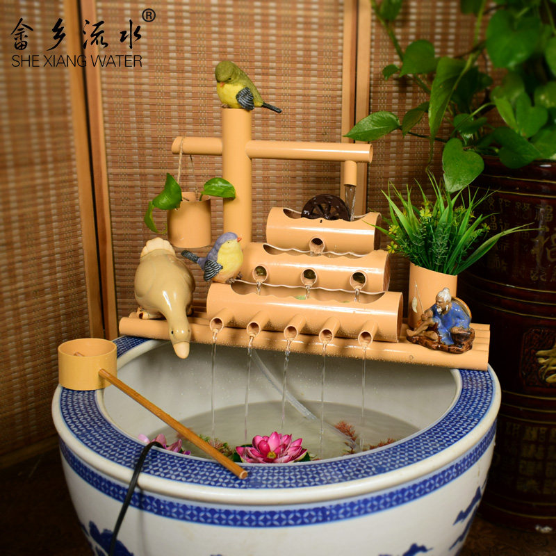 竹子流水摆件鱼缸石槽循环水取代氧气泵过滤器喷泉竹筒水车流水器