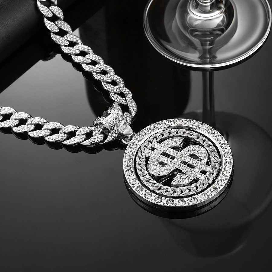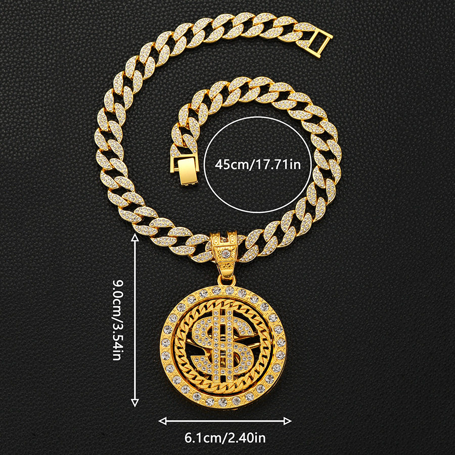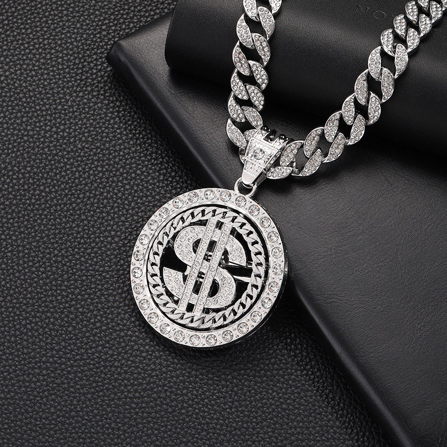 热卖原创设计嘻哈美元吊坠cuban link个性可旋转美金男女古巴项链
