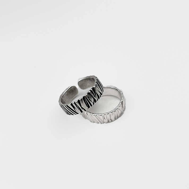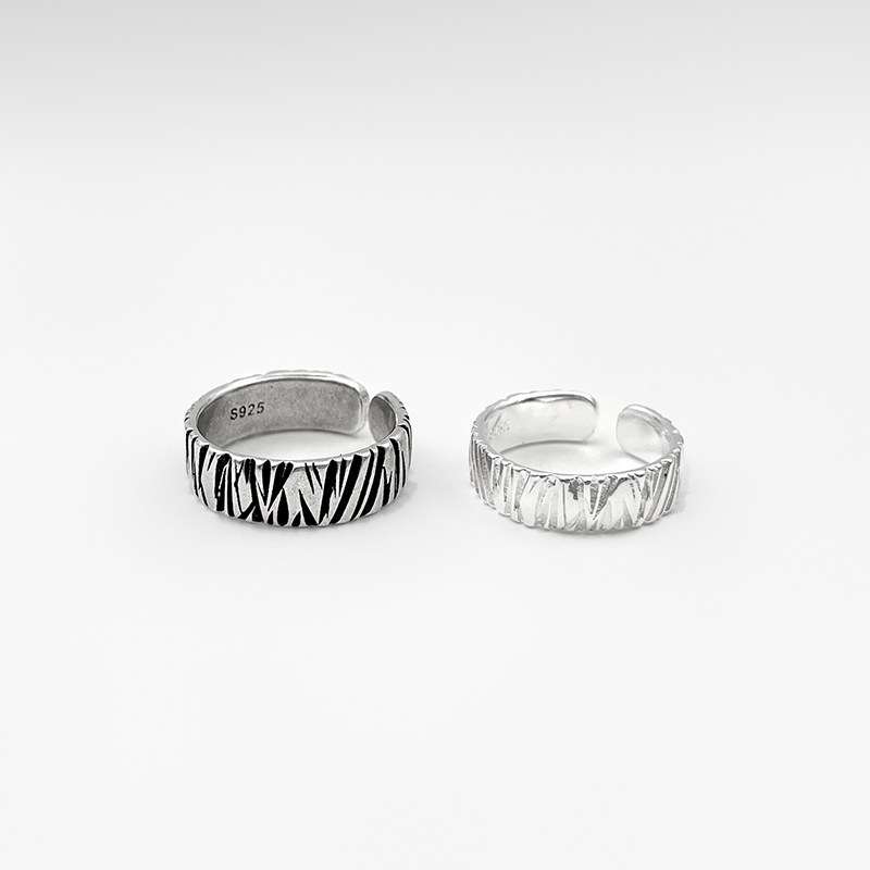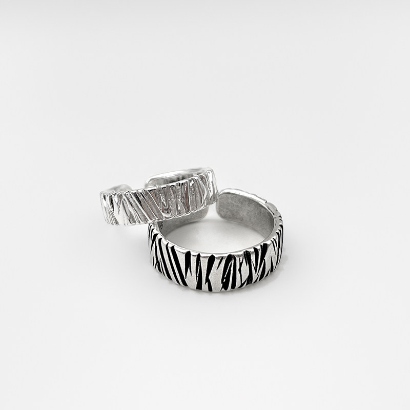 WHYBLUE 自制山无棱素圈复古铜镀银情侣戒指开口可调节对戒手工潮