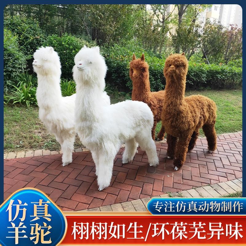 仿真动物羊驼模型景区草泥马落地摆H件皮毛工艺品仿真驼羊道具