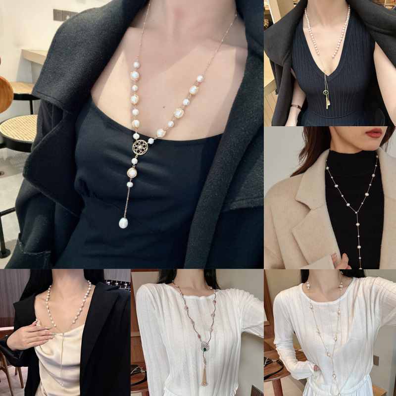 淡水珍珠冬季长款毛衣链复古高级感项链首饰女满天星颈饰配饰饰品