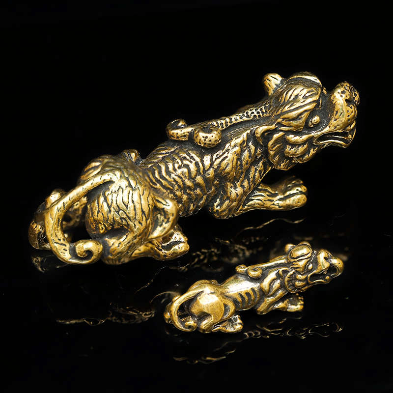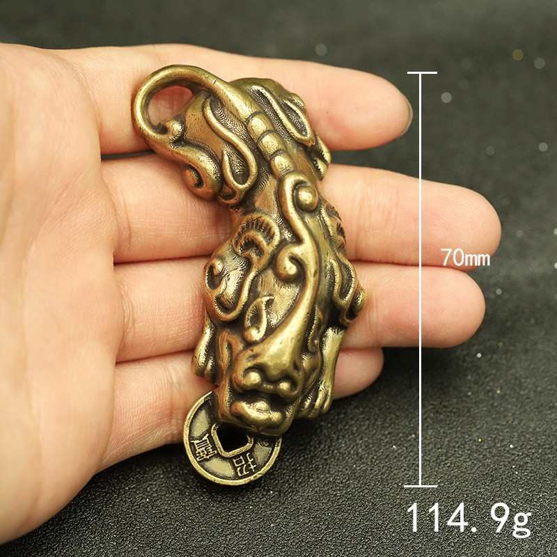 黄铜实心貔貅天禄手把件咬钱招财皮休桌面摆件男女随身把玩文玩镇