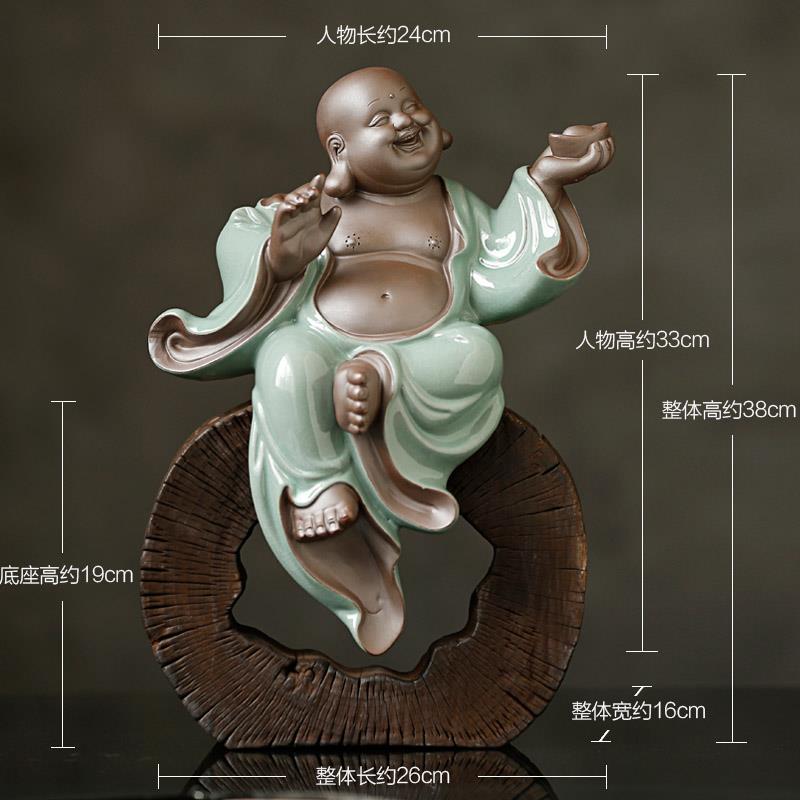 陶瓷弥勒佛摆件招财笑佛新中式禅意客厅玄关博古架办公室装饰桌面
