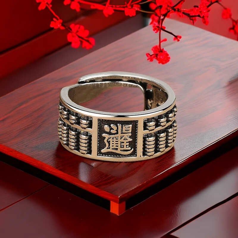 复古算盘92g5银戒指个性霸气日进斗金民族风男女开口可调单身指环