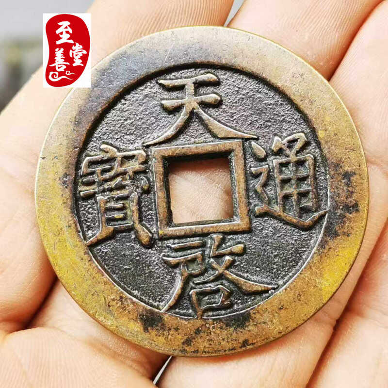 古玩收藏老包浆明朝天启通宝背十一两铜钱直径43MM