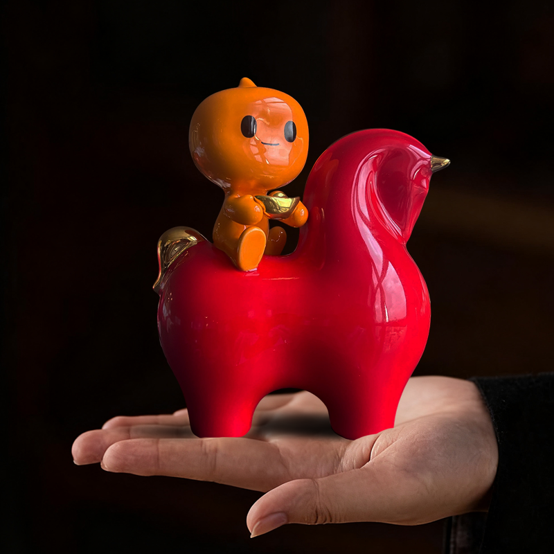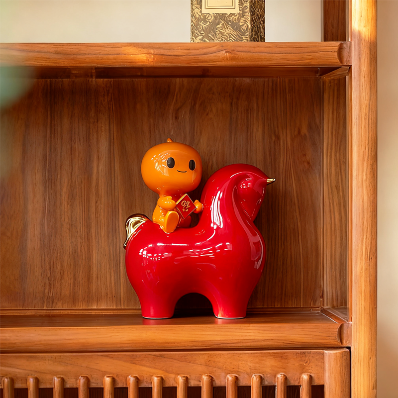 2026款淘公仔马年生肖陶瓷摆件红色喜庆新年礼物伴手礼福财双至