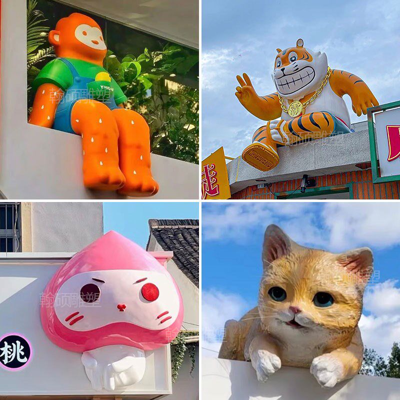 定制玻璃钢卡通门头雕塑店铺爬墙玩偶立体卡通动物宠物网红摆件