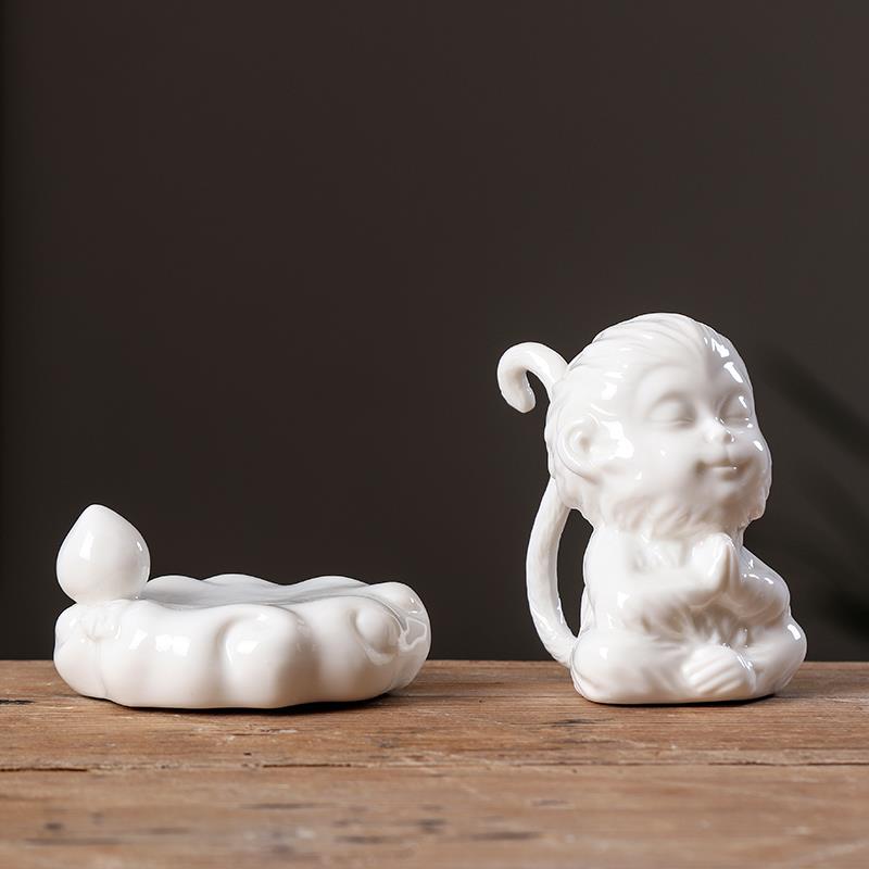 精品白瓷齐天大圣孙悟空陶瓷禅意茶宠摆件小猴子鱼缸造景家居饰品