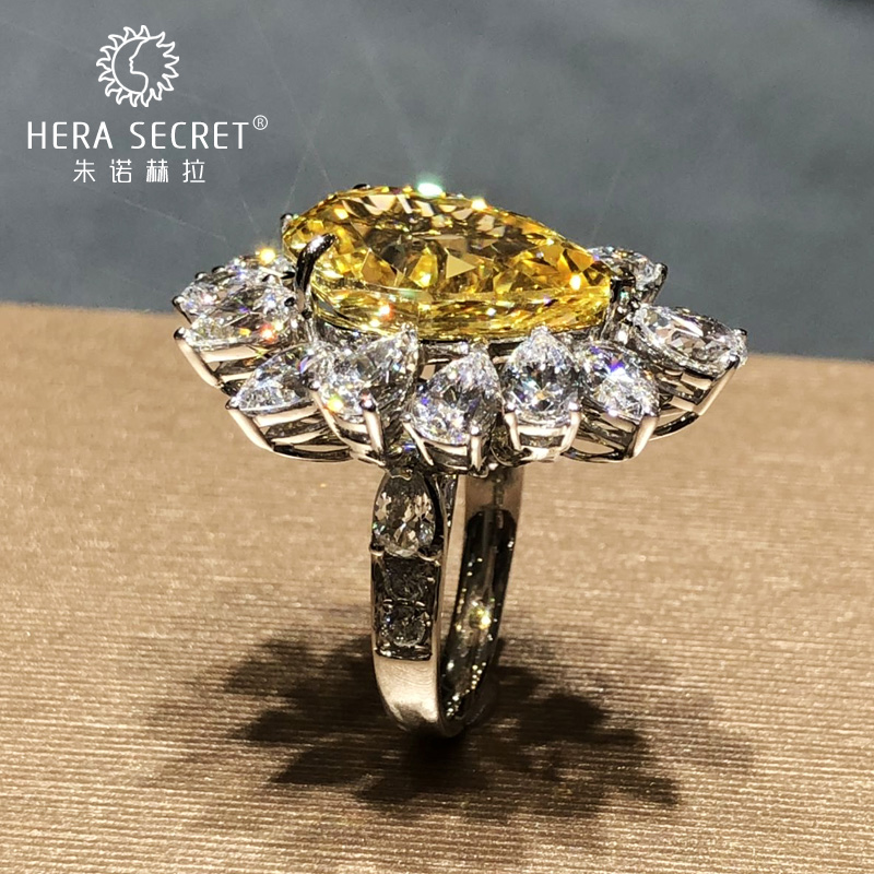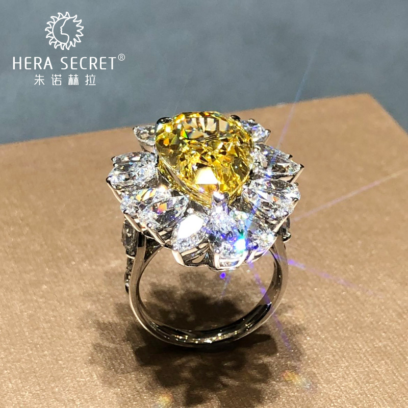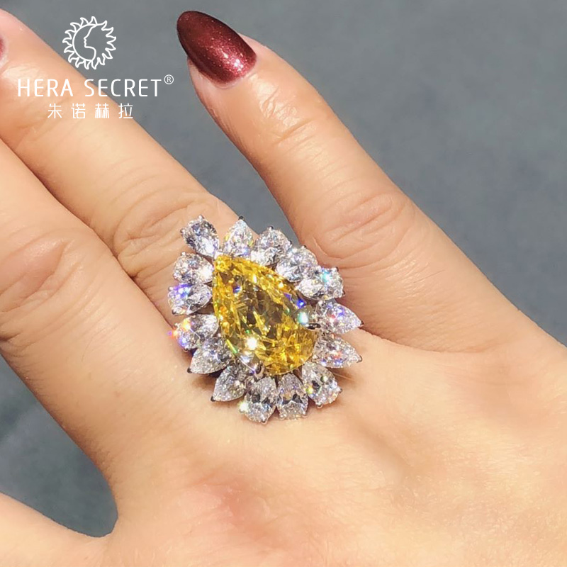 朱诺赫拉18k金订制珠宝10克拉FRP黄水滴仿真大钻石奢华ins戒指女