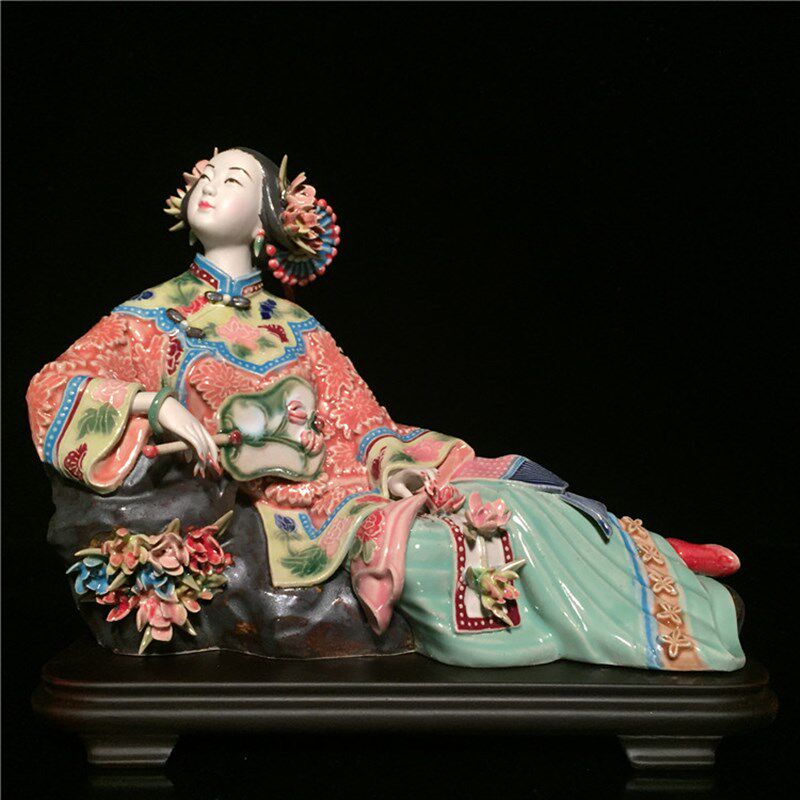 石湾公仔陶瓷仕女摆件林伟东大师特色商务礼品客厅玄关电视柜装饰