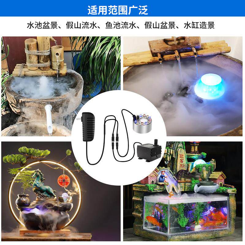 小型假山流水盆景水泵雾化All循环造雾器茶盘鱼缸喷雾抽水造景