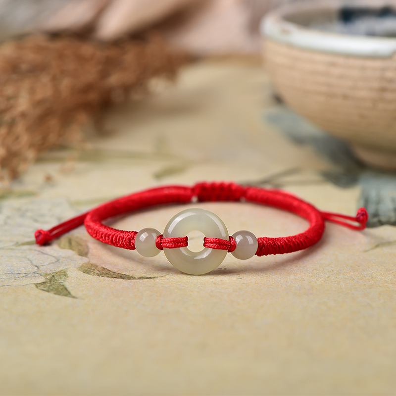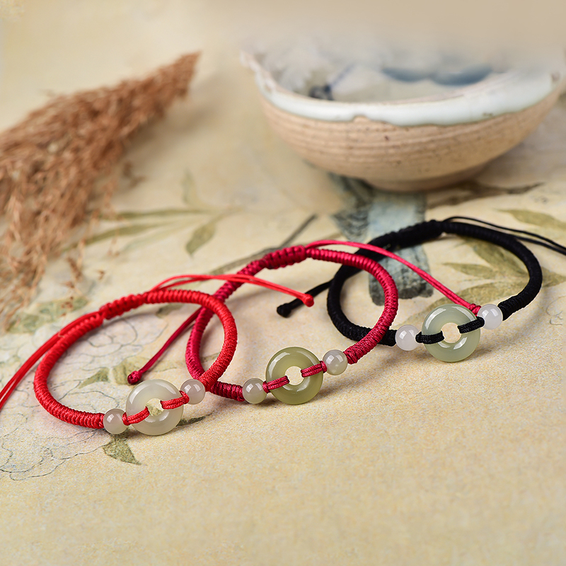 正品天然和田玉红绳手串手工编织手链本命年节日好礼男女同款