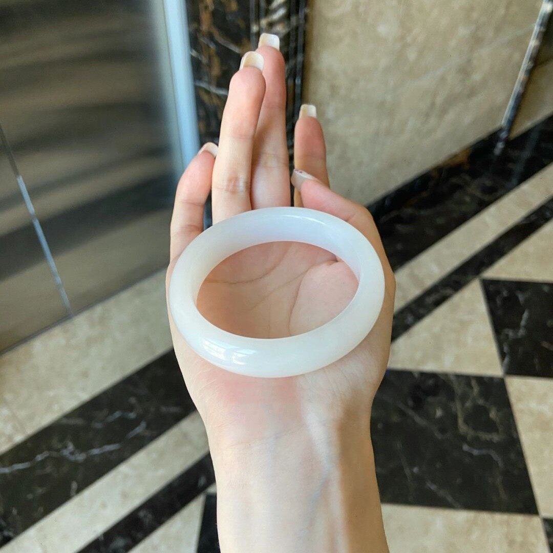 新疆和田玉白玉手镯女款扁条玉石真正品天然青玉羊脂玉贵妃玉镯子