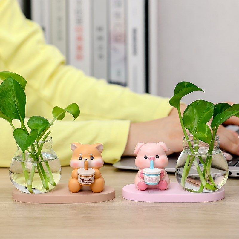 可爱解压办公室治愈公仔好物工位毕业桌面绿萝水培花瓶装饰品摆件