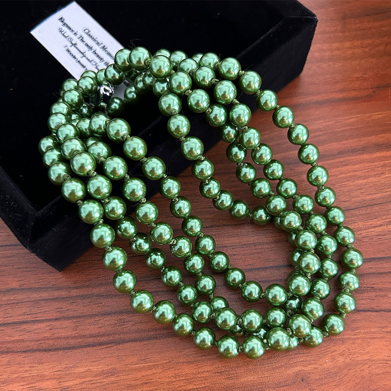 新款爆款大溪地孔雀绿色珍珠项链简约百搭叠戴高级感轻奢毛衣链女