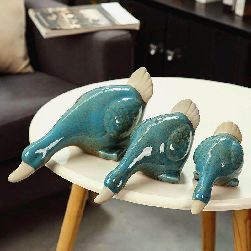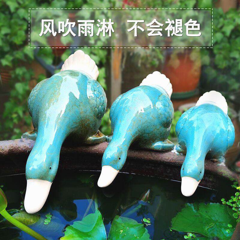 陶瓷喝水鸭子庭院假山石槽水池造景鱼缸室外鱼池现代简约装饰摆件