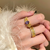 宫廷风麦穗珍珠紫色戒指女款精致复古轻奢食指戒小众独特中古指环