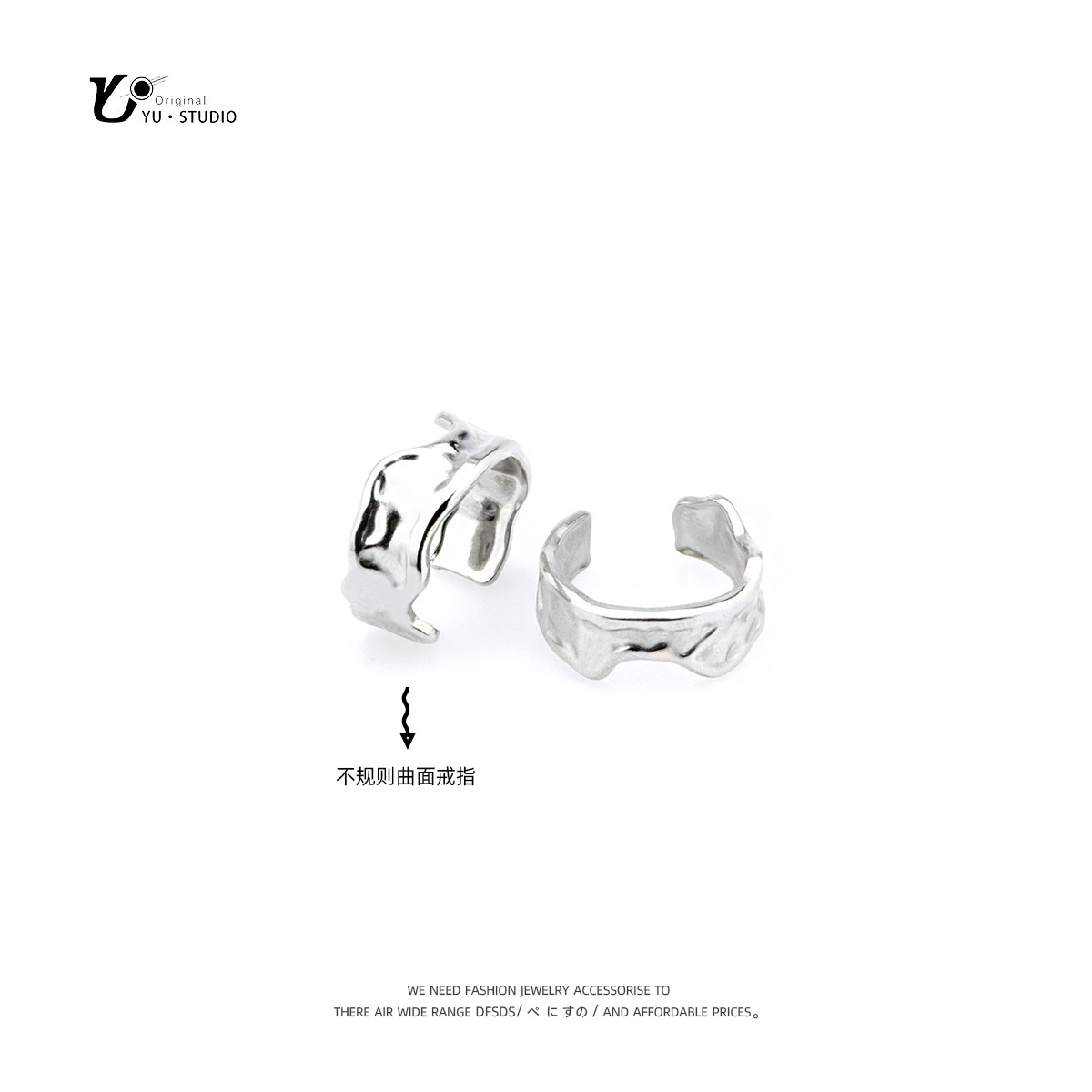 YU原创设计时尚嘻哈不规则宽面钛钢戒指男潮ins冷淡风个性指环