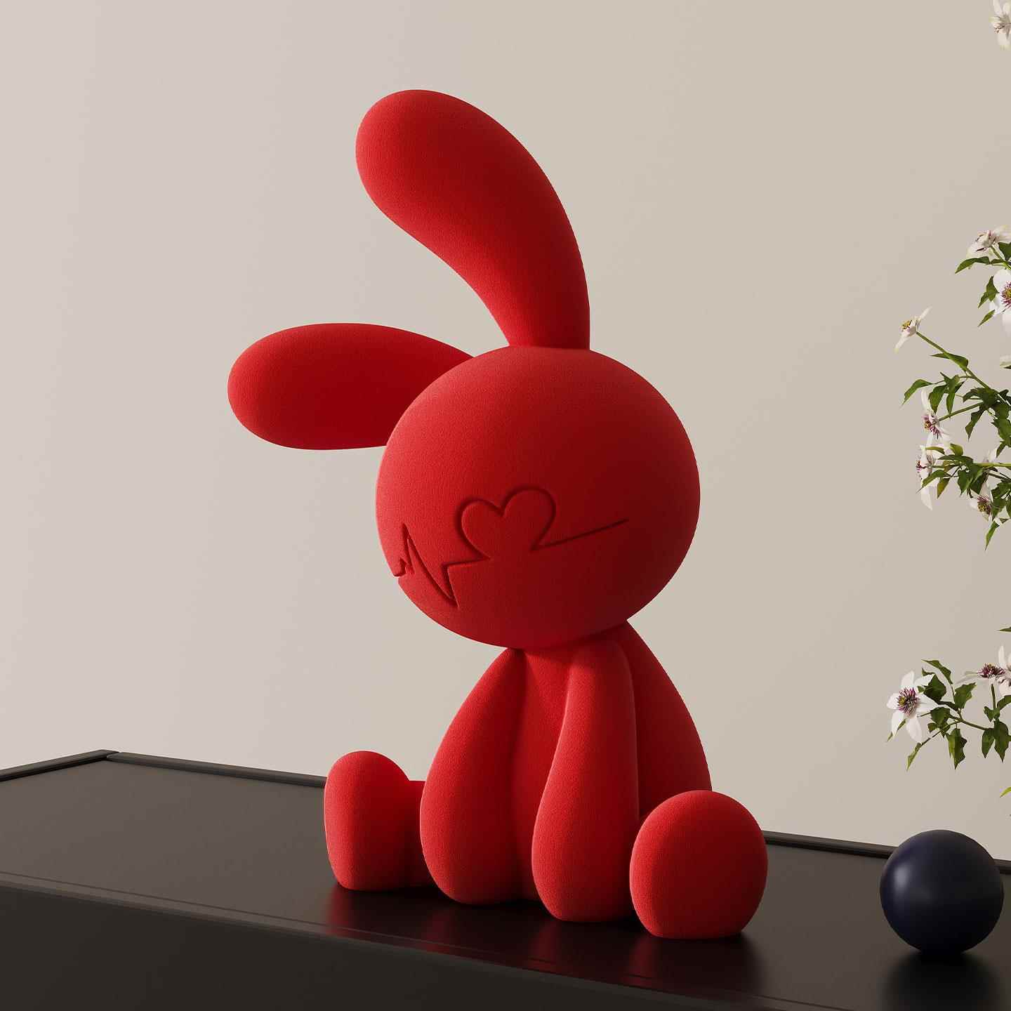 坐姿兔子红色摆件客厅玄关酒柜电视柜背景小众高级感家居软装饰品