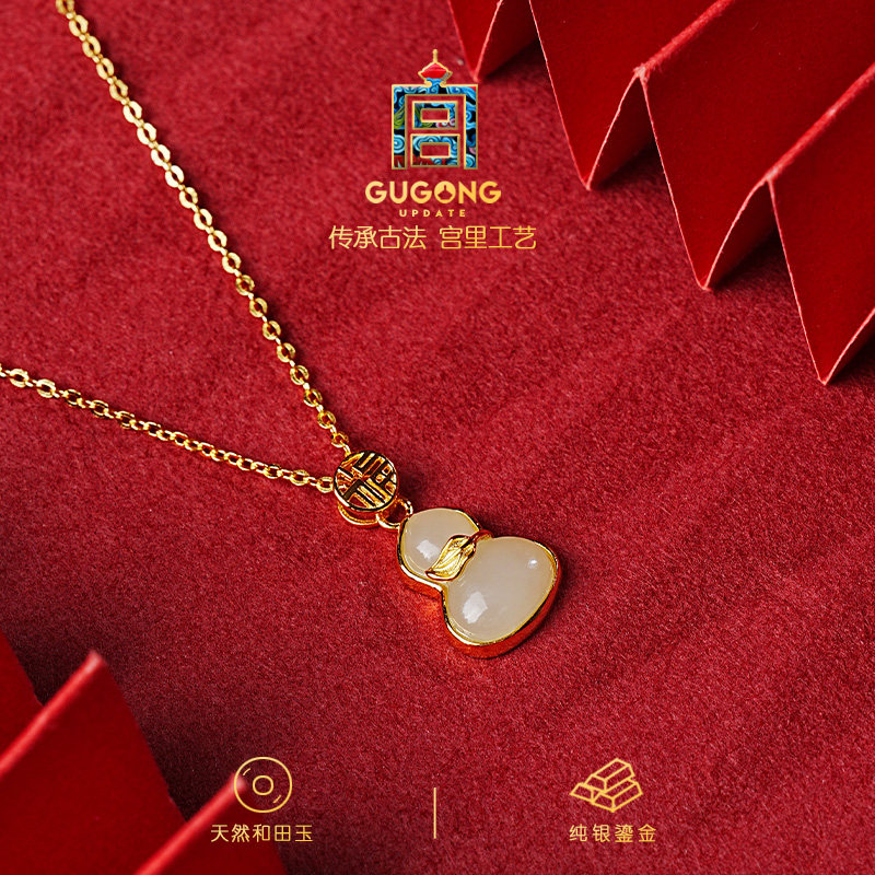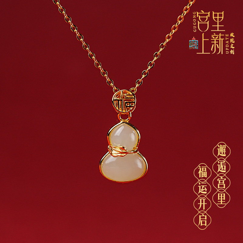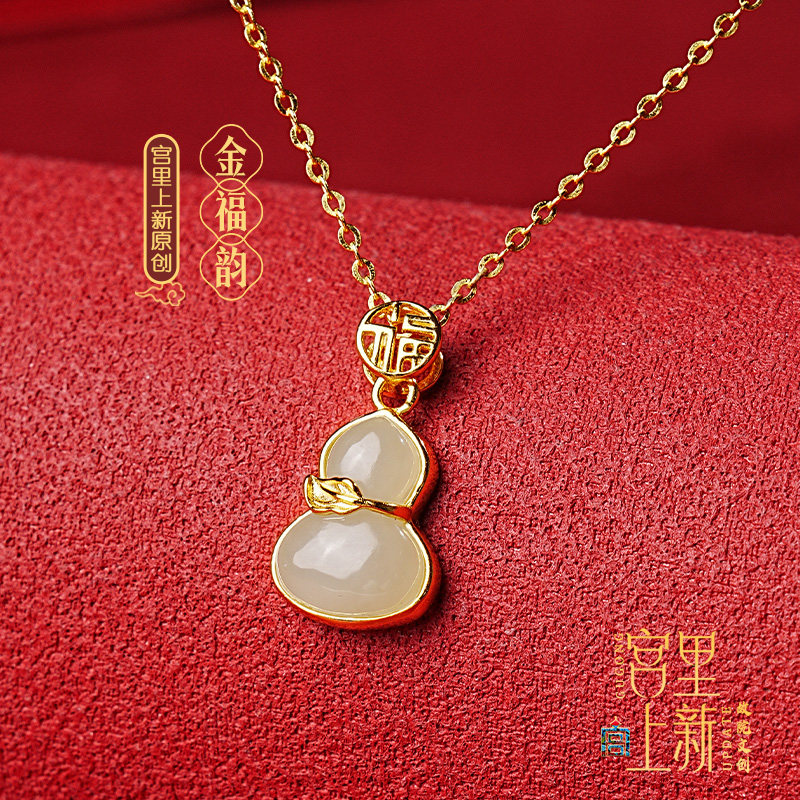 宫里上新葫芦项链女和田玉吊坠纯银玉坠中式毛衣链生日礼物送妈妈