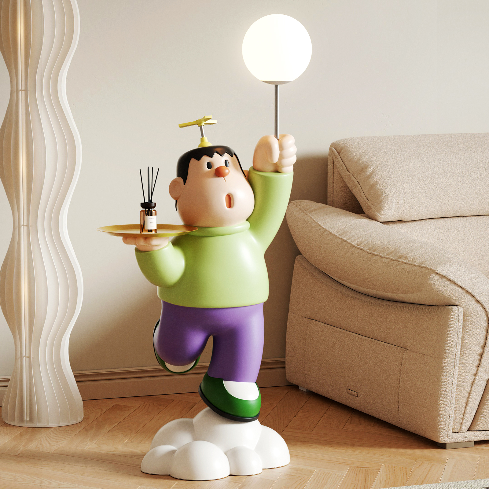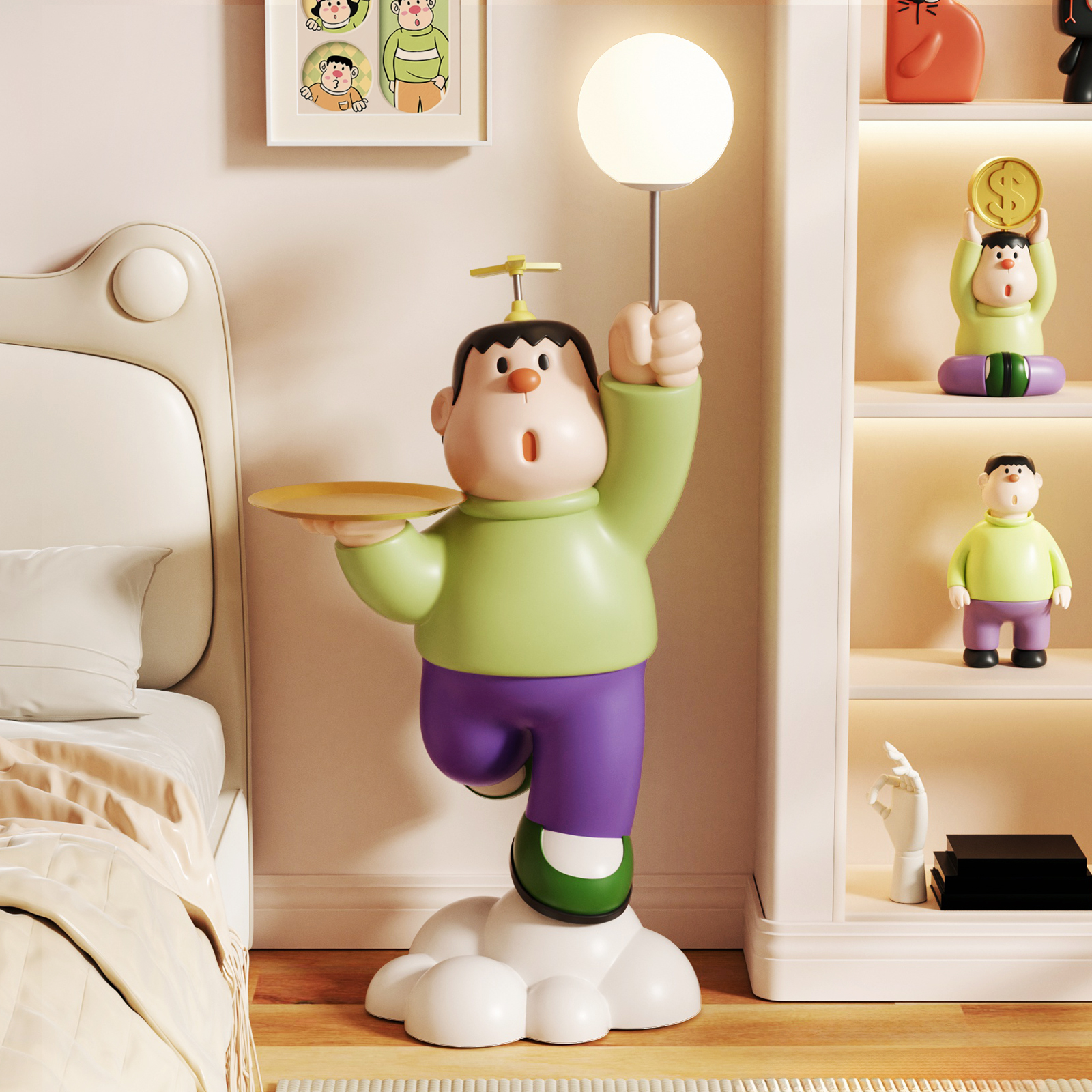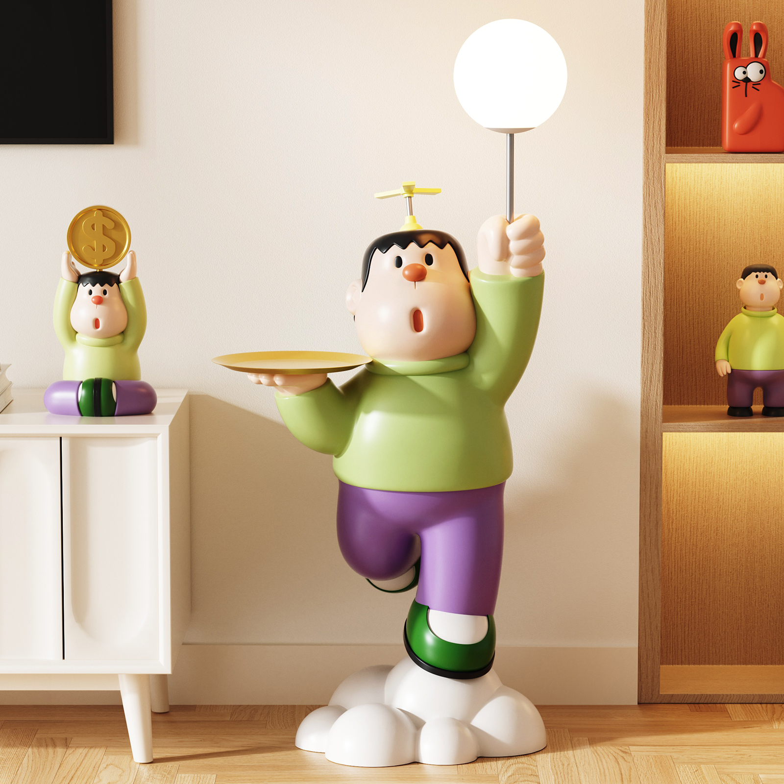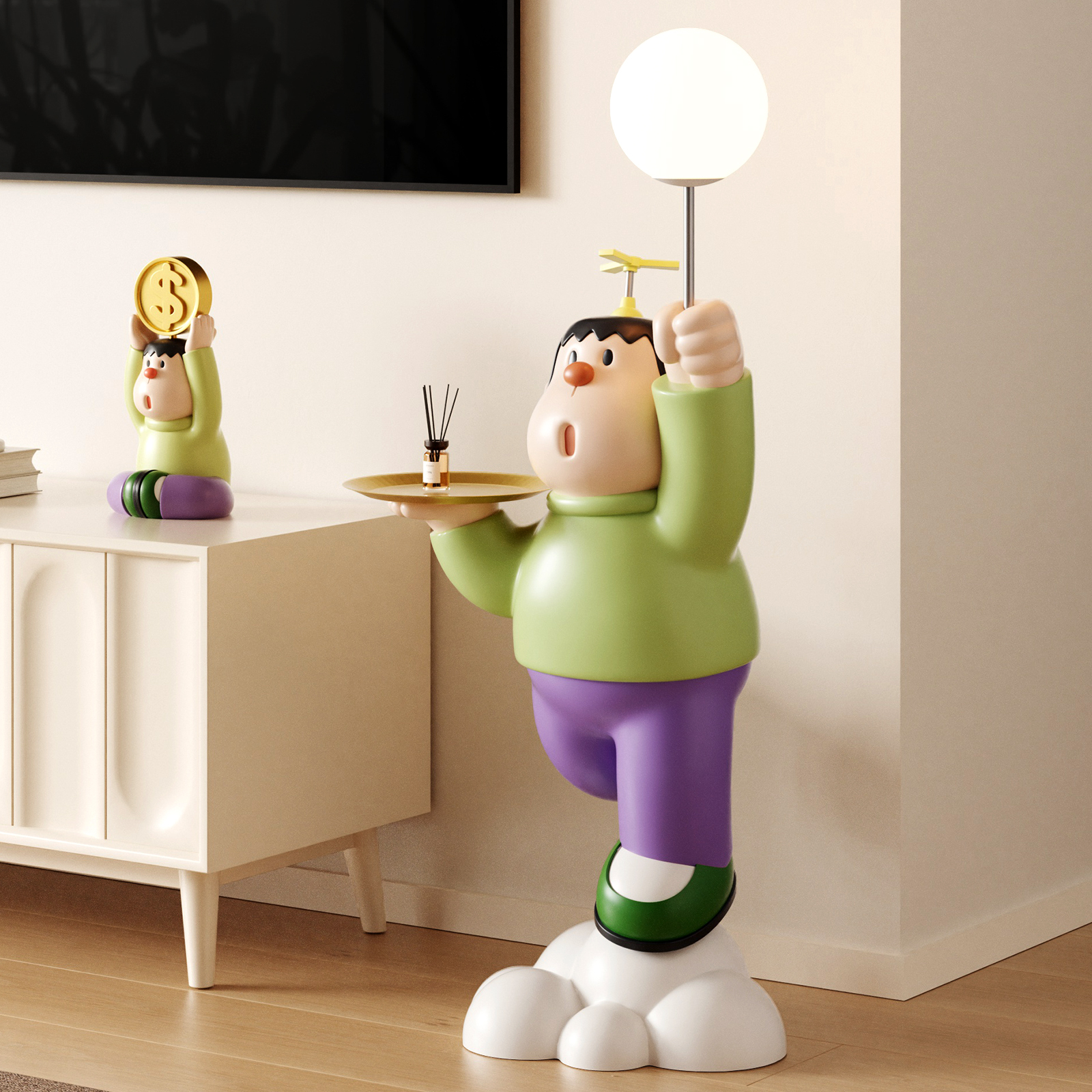 胖虎客厅落地摆件电视柜沙发旁托盘落地灯儿童房间大号公仔装饰品