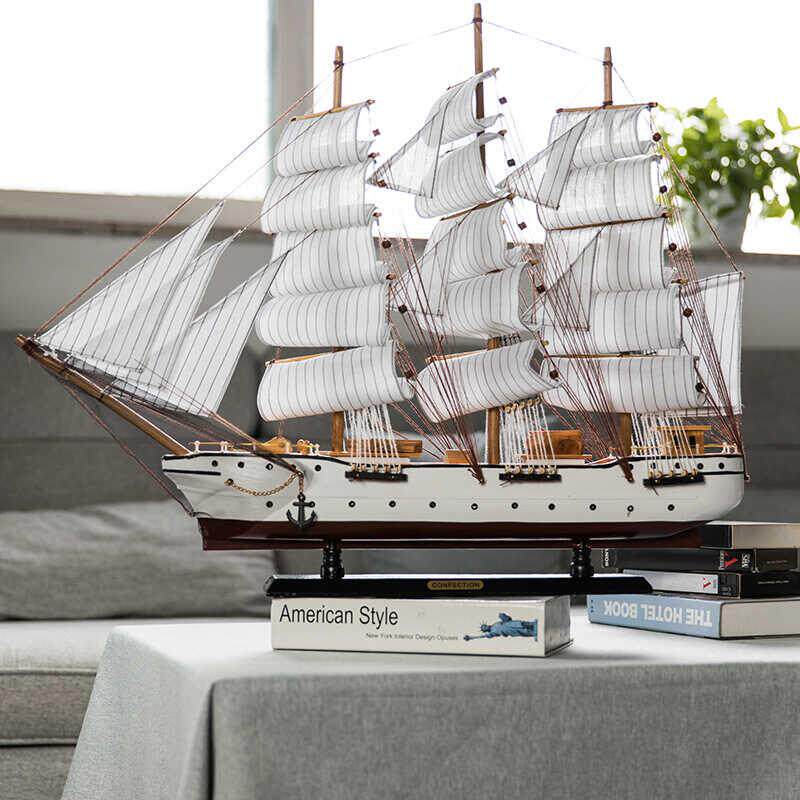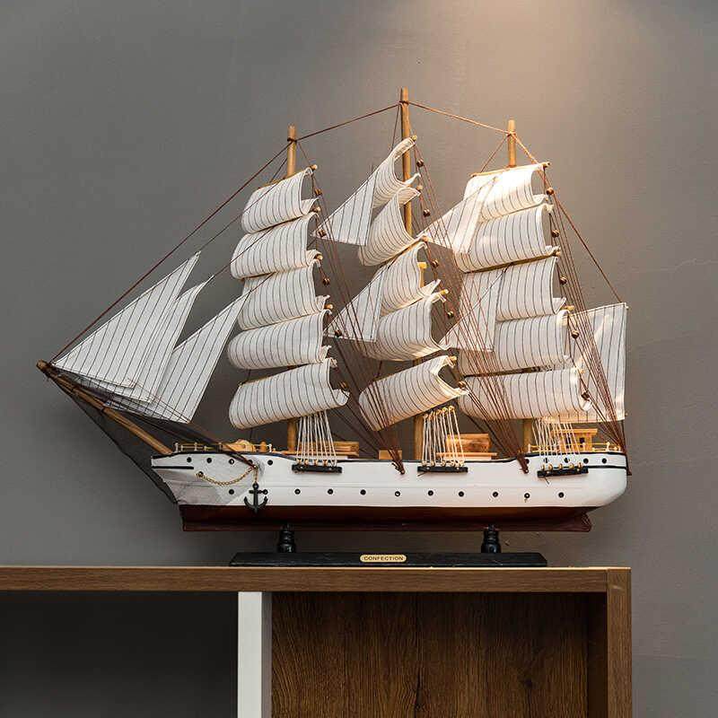 实木帆船摆件模型一帆风顺客厅玄关酒店前台招财高档电视柜工艺礼