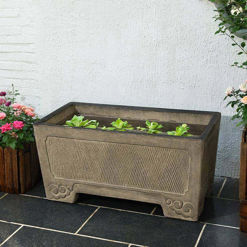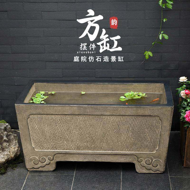 户外阳台养鱼池造景摆件庭院布置室外古法小鱼缸景观院子落地水槽
