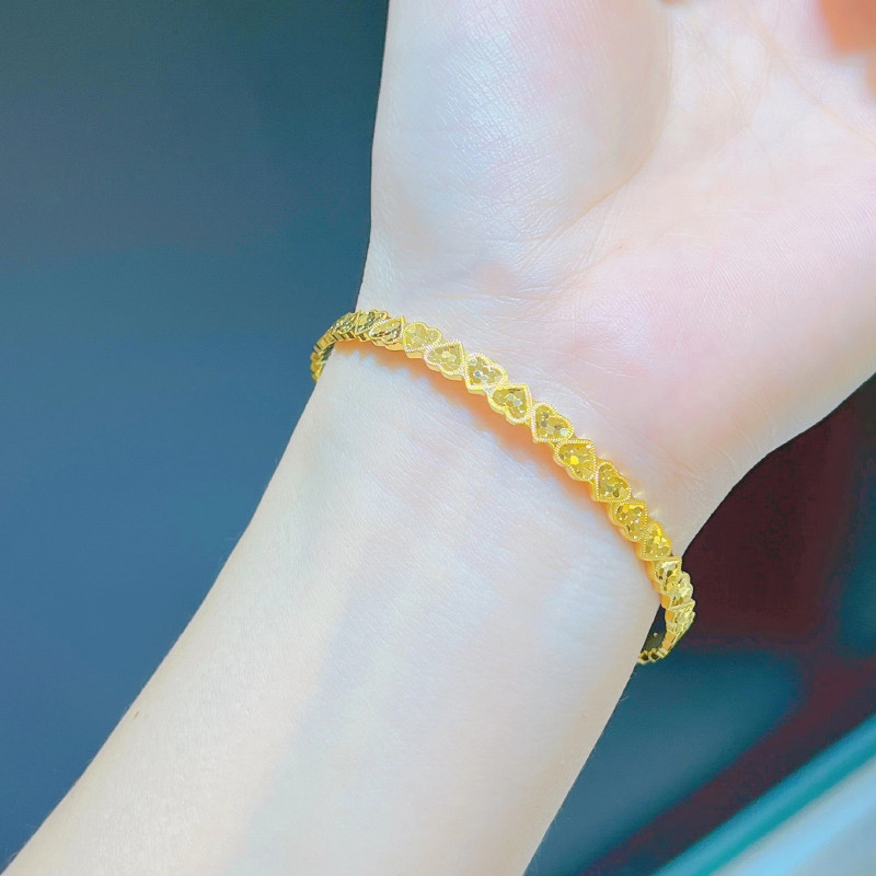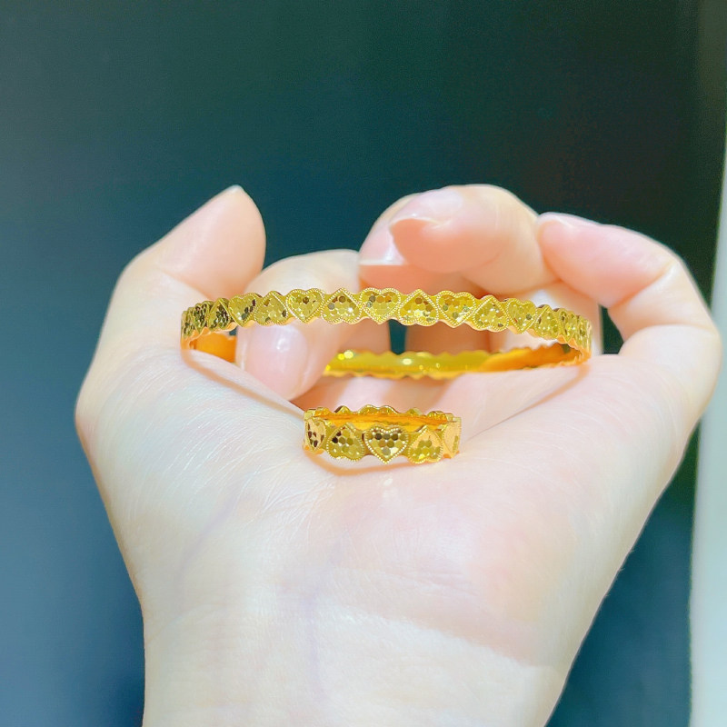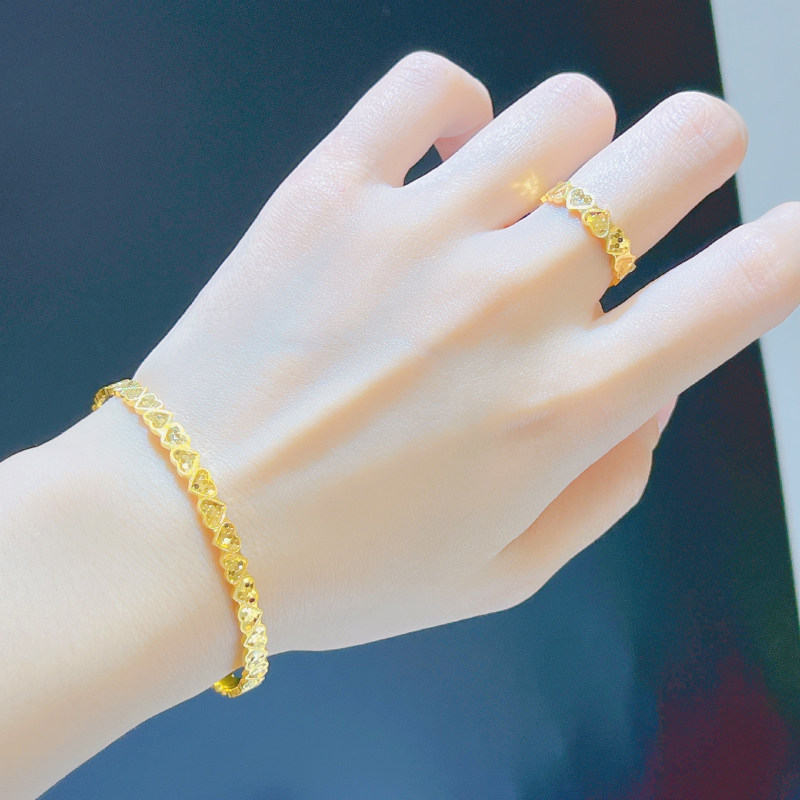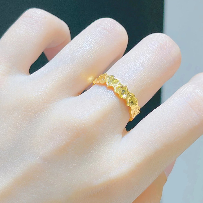 5G黄金鱼鳞闪光爱心戒指指环999足金2023新款蜂巢手镯送女友礼物