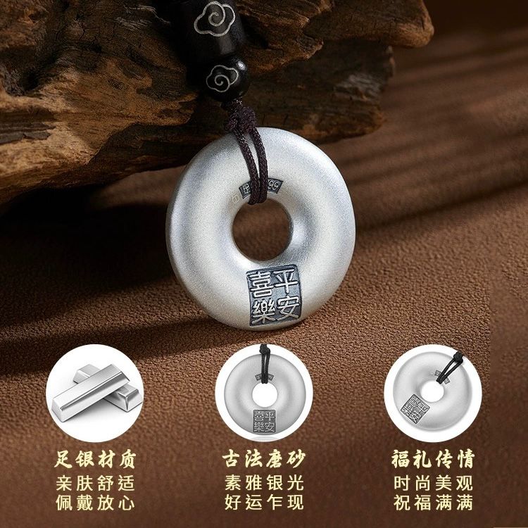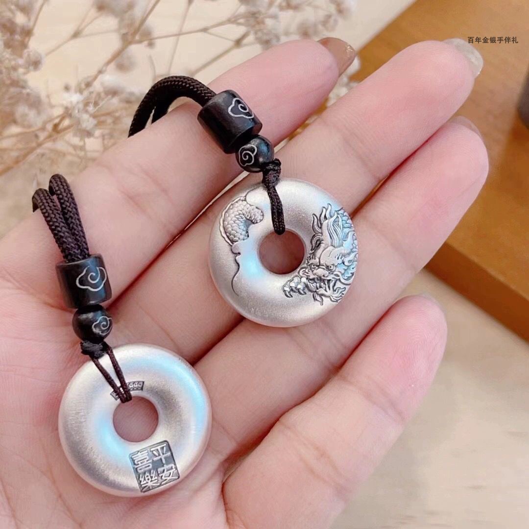 足银999实心平安扣貔貅吊坠项链纯银挂件本命年男女民族生日礼物
