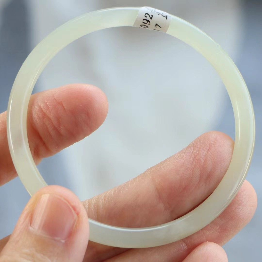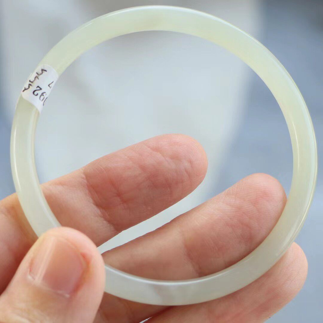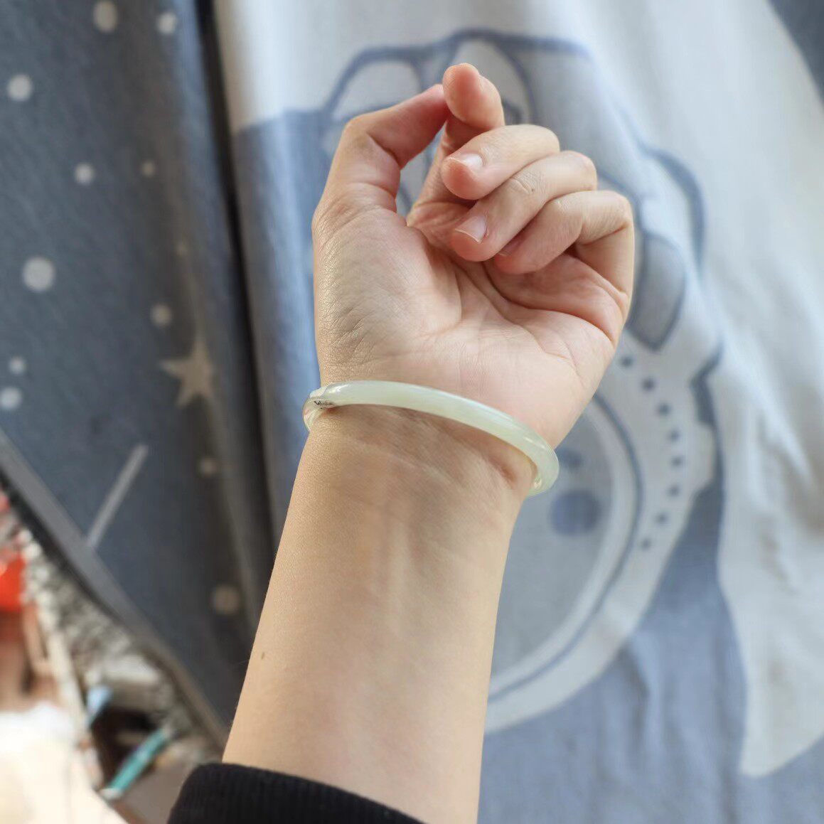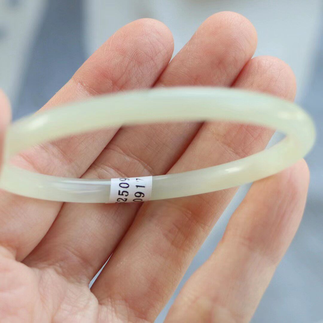 保真天然和田玉手镯55圈口证9260917和田玉晴水偏白色 青海料圆条