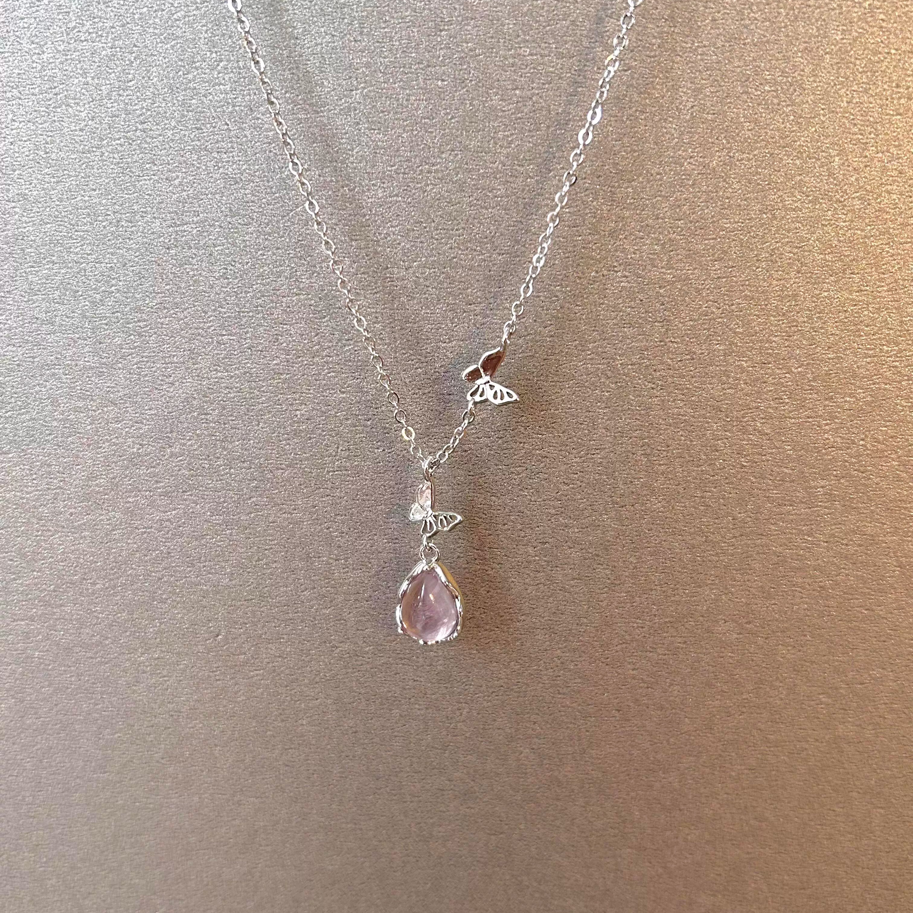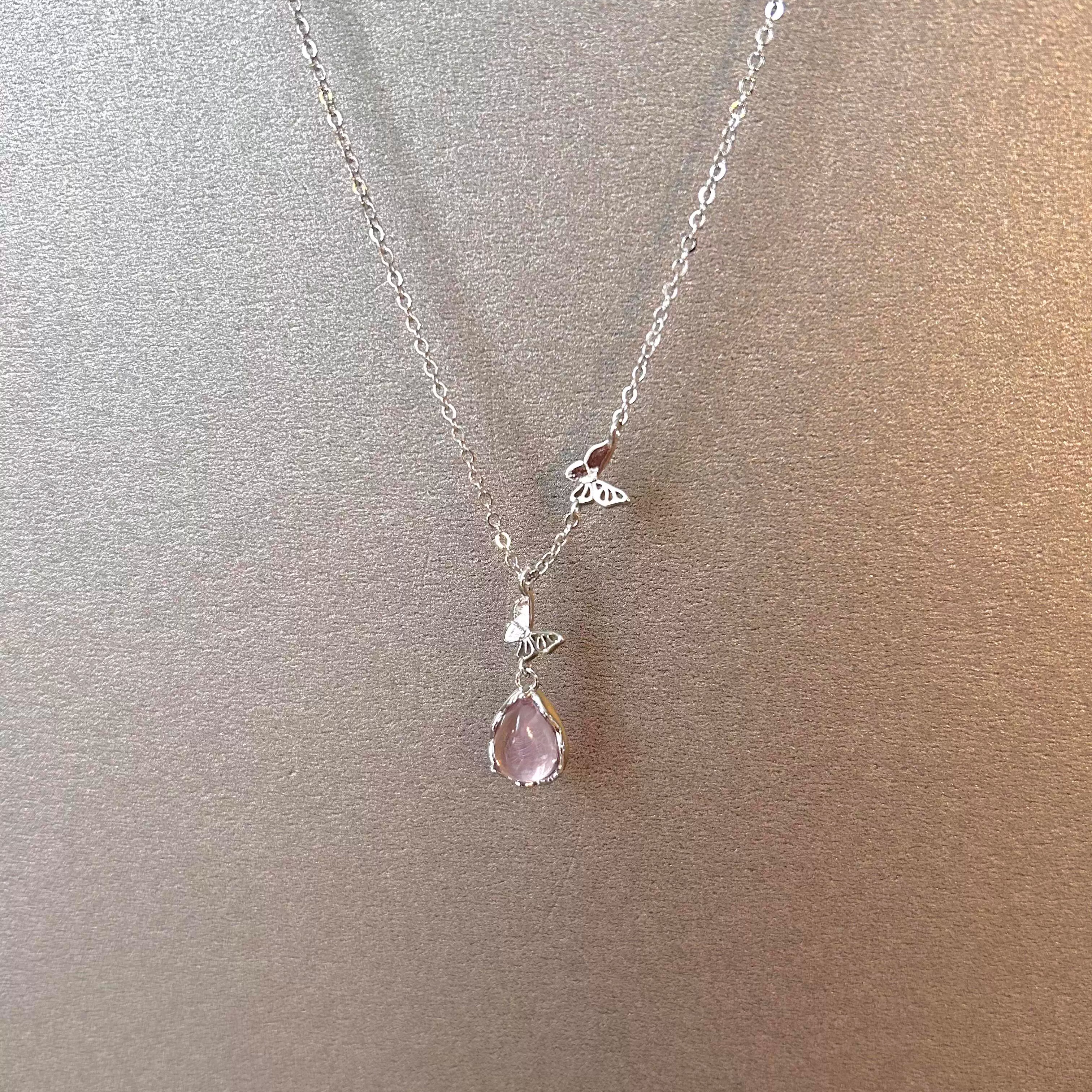 【粉雾蝶语】清冷感粉色水滴蝴蝶项链女温柔气质甜美百搭锁骨链