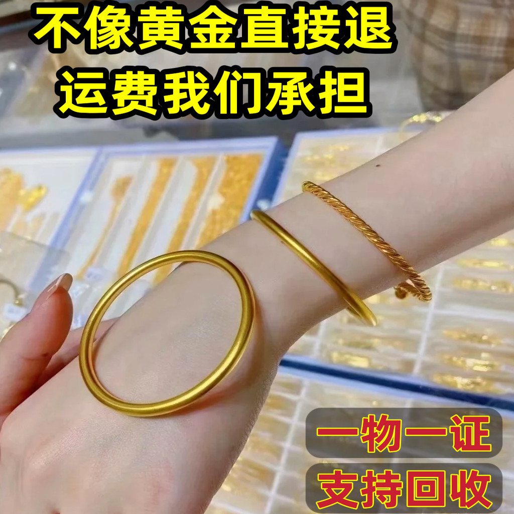 孟加拉赤金古法黄金手镯仿真传承999不掉色素圈细金首饰结婚礼物