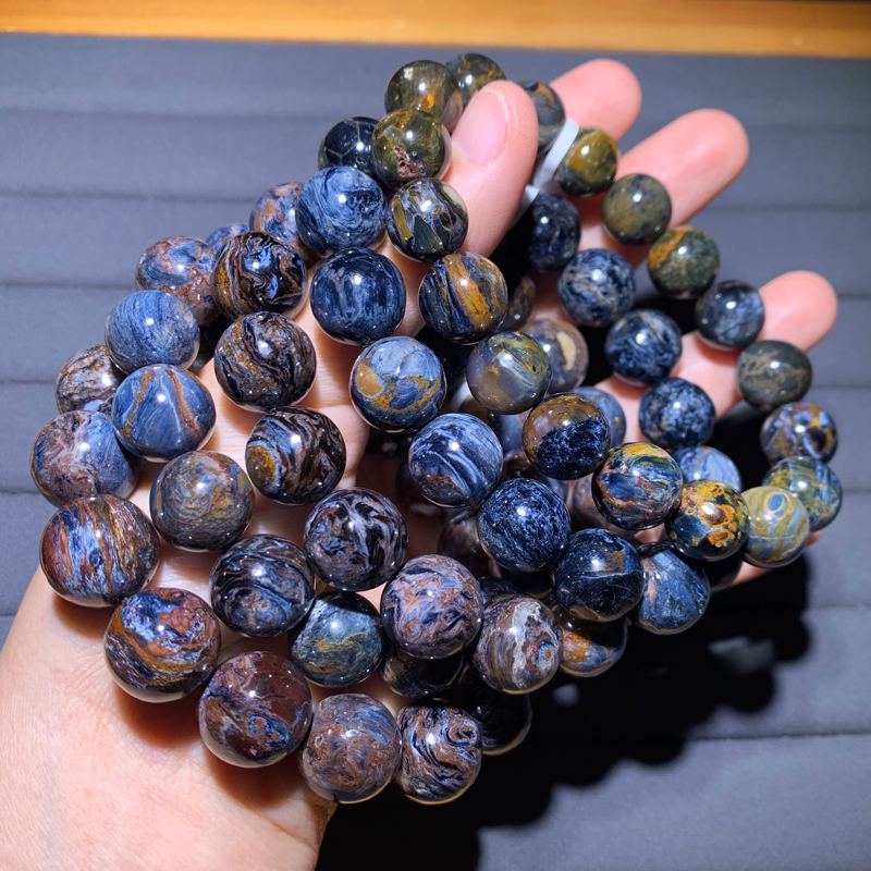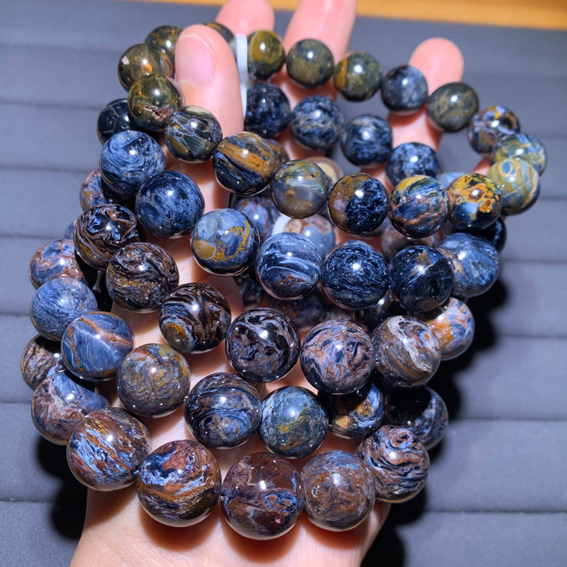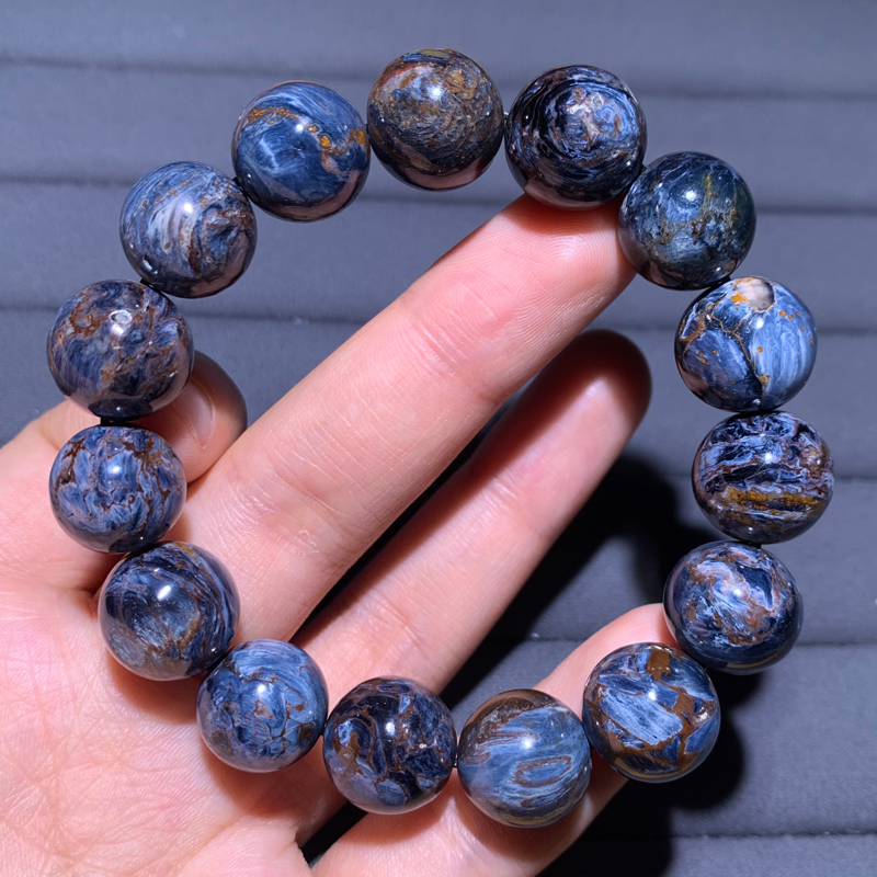 天然彼得石单圈手链暴风雨石原矿虎睛玉饰品深蓝地球纹一物一图女